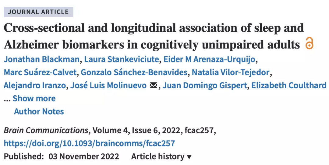 无独有偶。Brain Communications上的研究纳入了分析睡眠质量/效率的迄今为止最大队列——欧洲预防阿尔茨海默性痴呆症纵向队列研究(EDPA-LAC)后发现:在没有认知障碍的人群中,睡眠时间不足7h与阿尔茨海默症病理学负担的增加有关。
