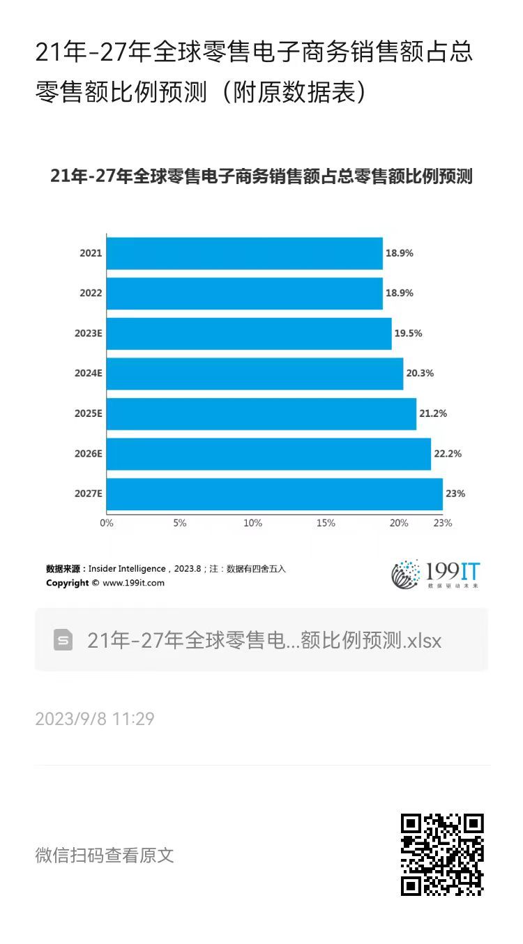 - 2021年-2027年全球零售电子商务销售额及同比预测(附原数据表)