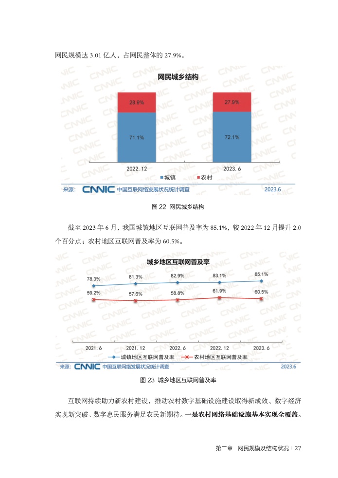 《报告》显示,截至2023年6月,我国网民规模达10.79亿人,较2022年12月增长1109万人,互联网普及率达76.4%。