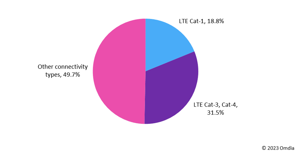 1. Figure 1: Over half of modules (50.3%) shipped in 2023 are either LTE Cat-1, Cat-3, or Cat-4