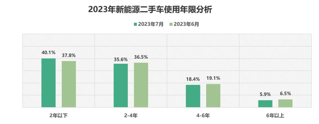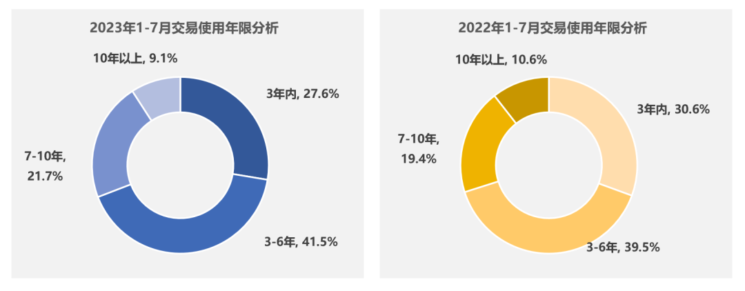 - 使用年限在4-6年的交易量占18.4%,环比下降了0.7个点。