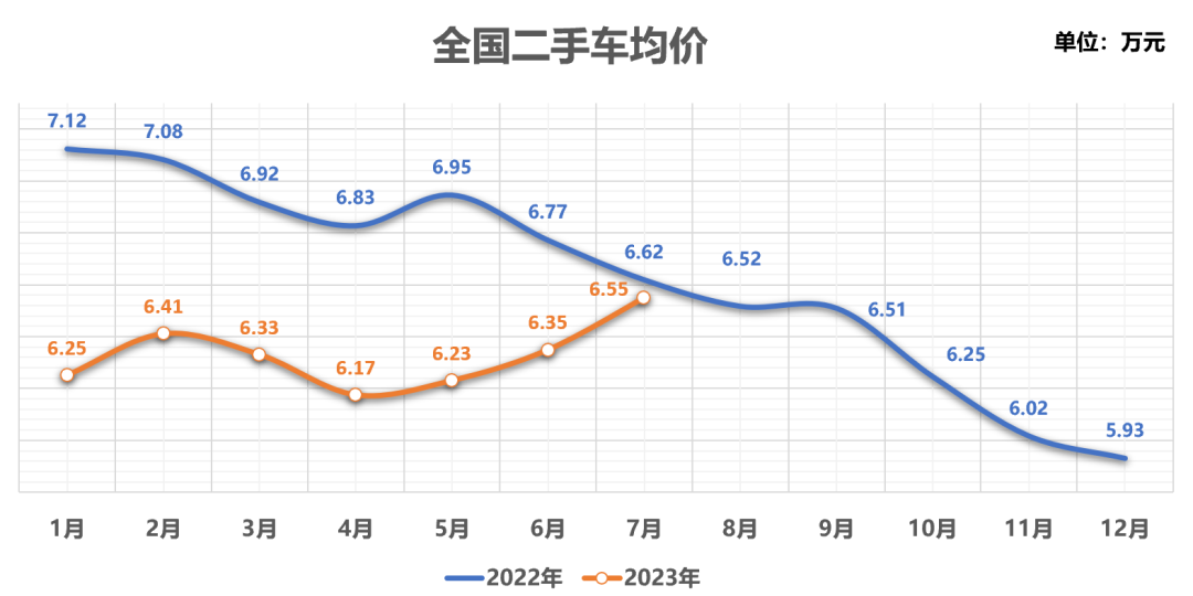 - 7月份,二手车交易均价持续回升,较6月增加了0.2万元,较去年同期下降了0.07万元。