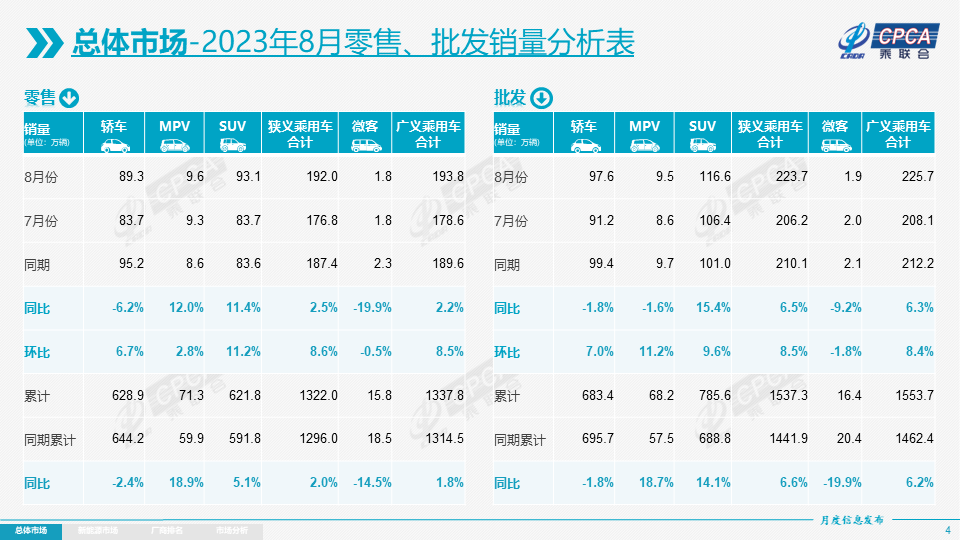 从今年春节过早、预期刺激政策出台反复未果、国六老库存促销战风起云涌、期待中的老国六车延期半年和去年基数逐步抬高等综合因素的影响下, 1-8月累计零售1322.0万辆实现同比正增长2.0%的良好表现。
