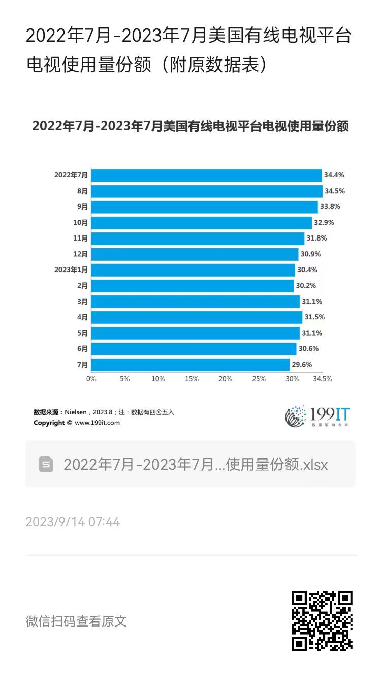 2022年7月-2023年7月美国有线电视平台电视使用量份额(附原数据表) ​​​