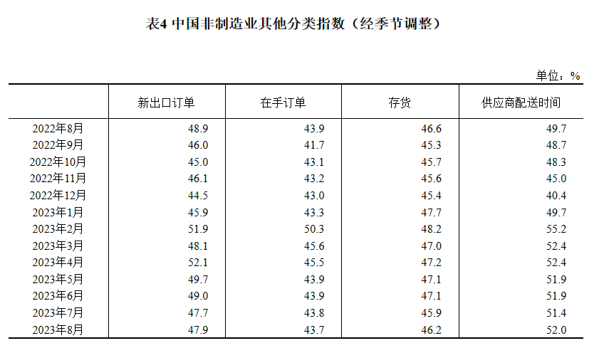 新订单指数为47.5%,比上月下降0.6个百分点,表明非制造业市场需求景气度下降。分行业看,建筑业新订单指数为48.5%,比上月上升2.2个百分点;服务业新订单指数为47.4%,比上月下降1.0个百分点。