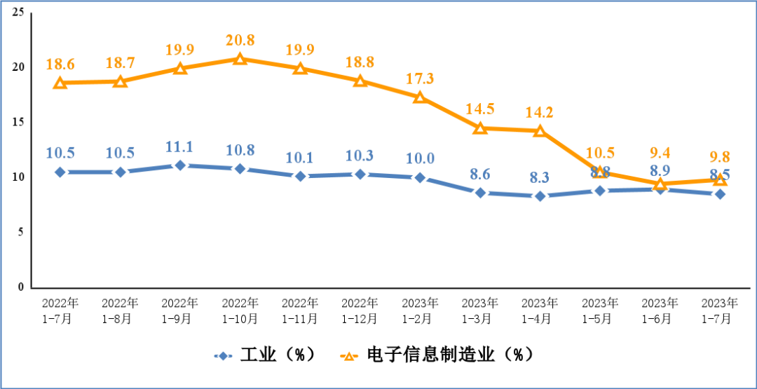 1—7月份,电子信息制造业固定资产投资同比增长9.8%,比同期工业投资增速高1.3个百分点,但比高技术制造业投资增速低1.7个百分点。