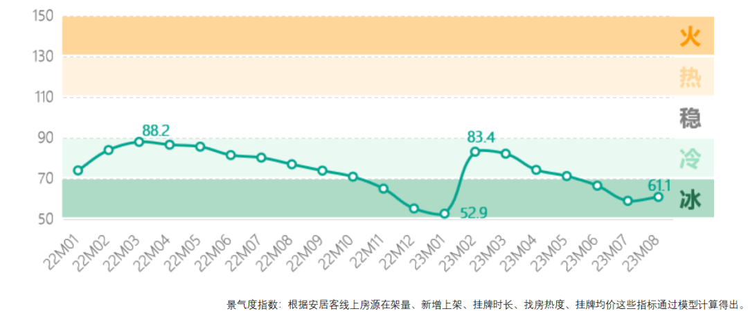 Ø 8月,全国百城二手房景气度指数出现触底回升的走势。在七八月份全国持续出台多项利好政策的大背景之下,尤其是超大特大城市城中村改造、认房不认贷、存量房贷利率的下调等政策之下,刺激了一部分改善型和观望人群的入市步伐,尤其是置换型改善需求,在政策利好下出现了集中挂牌的情况,从而带动挂牌量和新增挂牌的出现明显回升,政策也利好看房需求的逐步从线上向线下转移,能够带动后续交易量的回升。