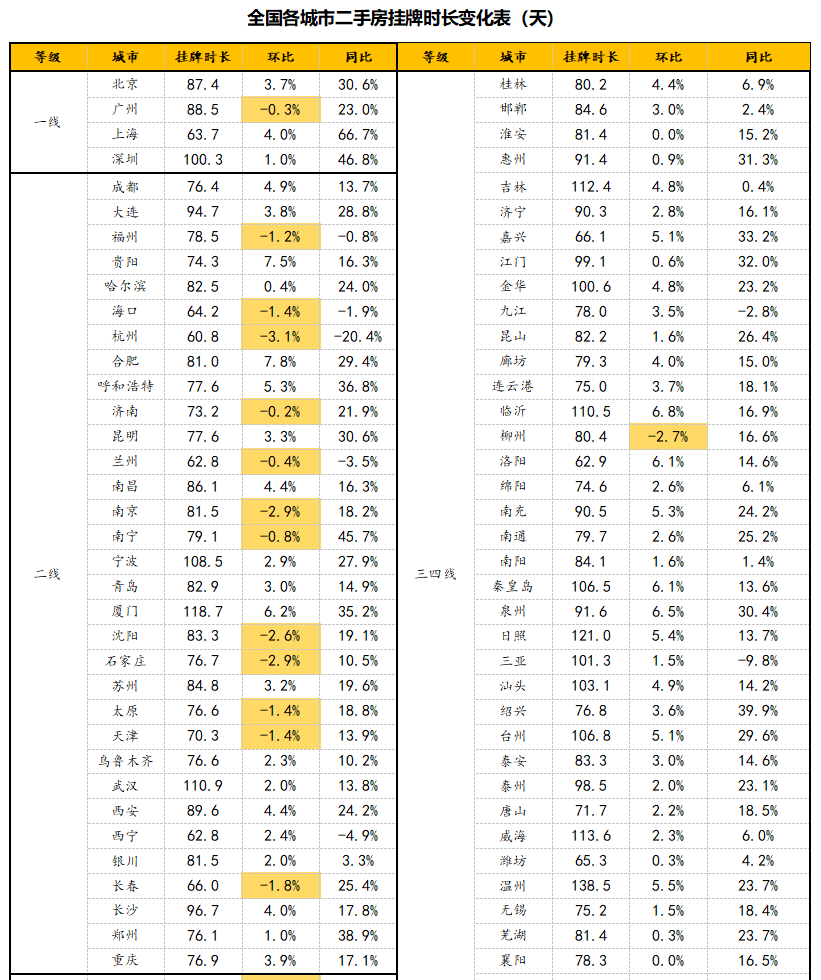 从各线城市的表现来看,一线城市在政策利好之下表现的更为活跃,其中一线城市的挂牌量和找房热度增幅明显高于二线城市和三四线城市。不过百城的成交活跃度并未在8月得到改善,各线城市二手房挂牌时长早8月依旧出现了小幅上涨,表明购房者对当前的利好政策尚需要时间进行消化。
