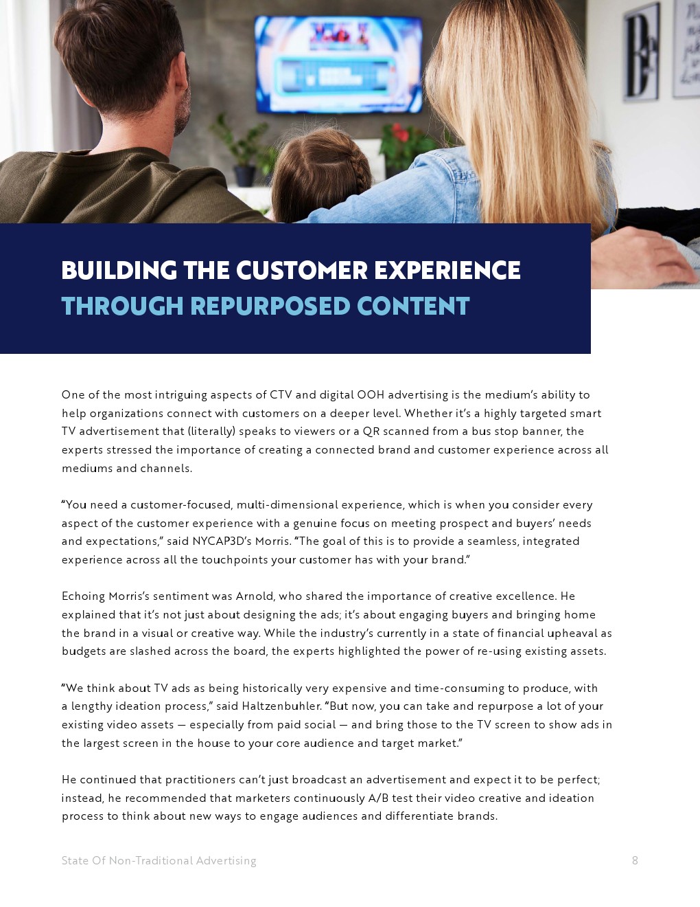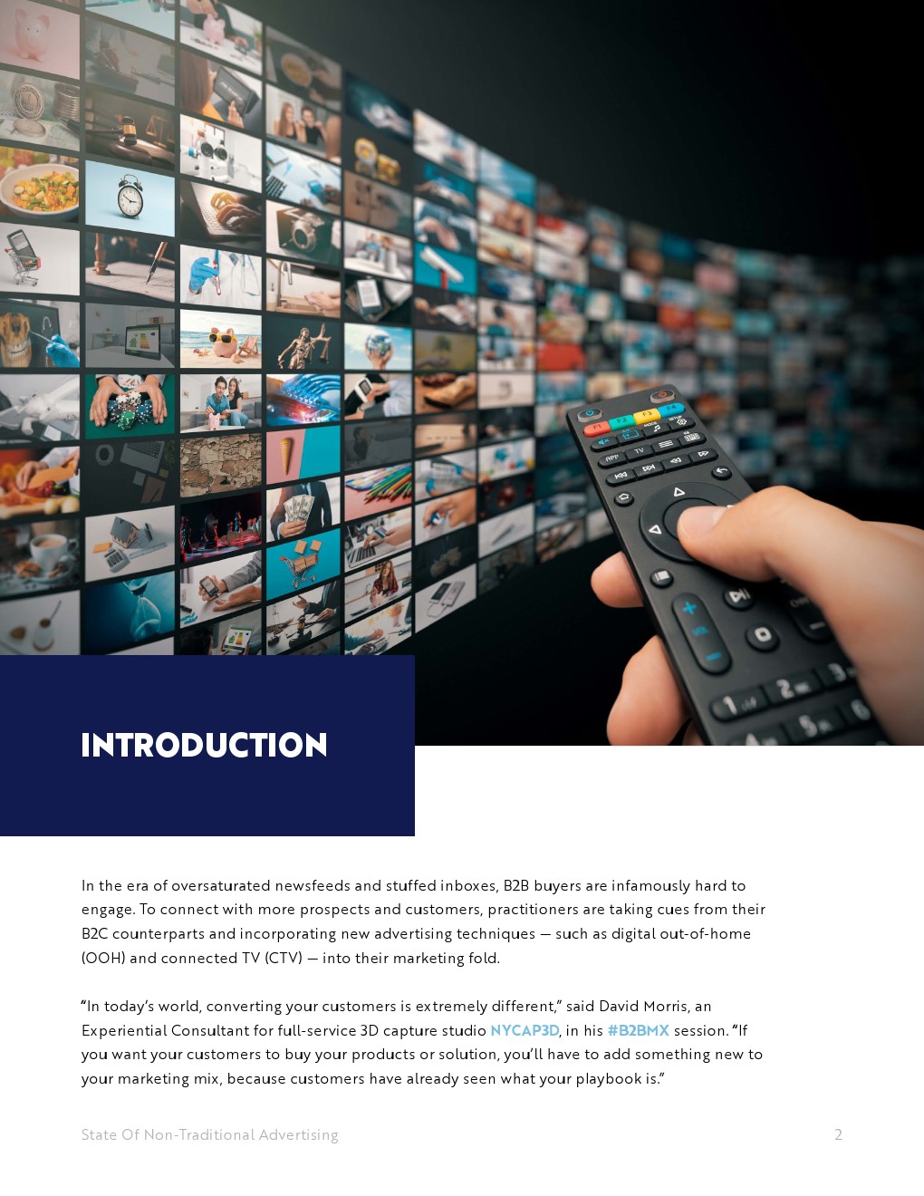 对于希望采用新广告策略或扩展现有广告策略的营销人员来说,数字户外广告和联网电视的力量是显而易见的:美国户外广告协会进行的一项调查发现,电视广告最能引起B2B决策者的共鸣,其次是数字户外广告。考虑到这一点,营销人员正在将在线横幅广告和路边广告牌转向互动的数字资产,让买家在一天中的任何时候都能参与其中,无论他们是在跑腿还是在疯狂地看自己喜欢的节目。