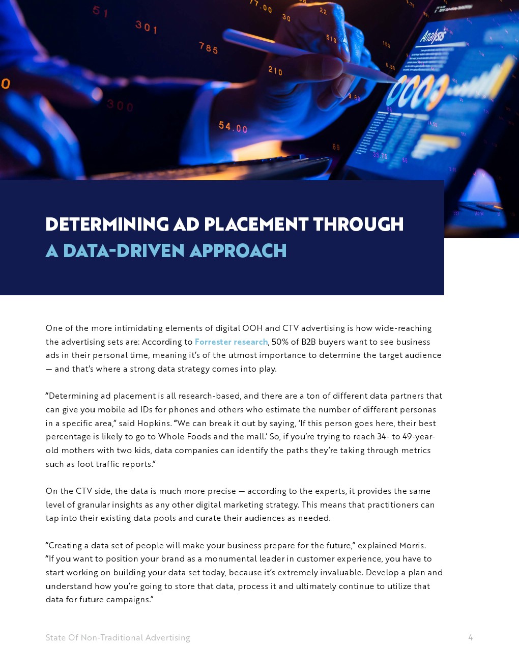 数字户外广告和联网电视广告的一个更令人生畏的因素是广告集的广博性:根据Forrester的研究,50%的B2B买家希望在他们的个人时间内看到商业广告,这意味着确定目标受众是至关重要的——这就是强大的数据策略发挥作用的地方。