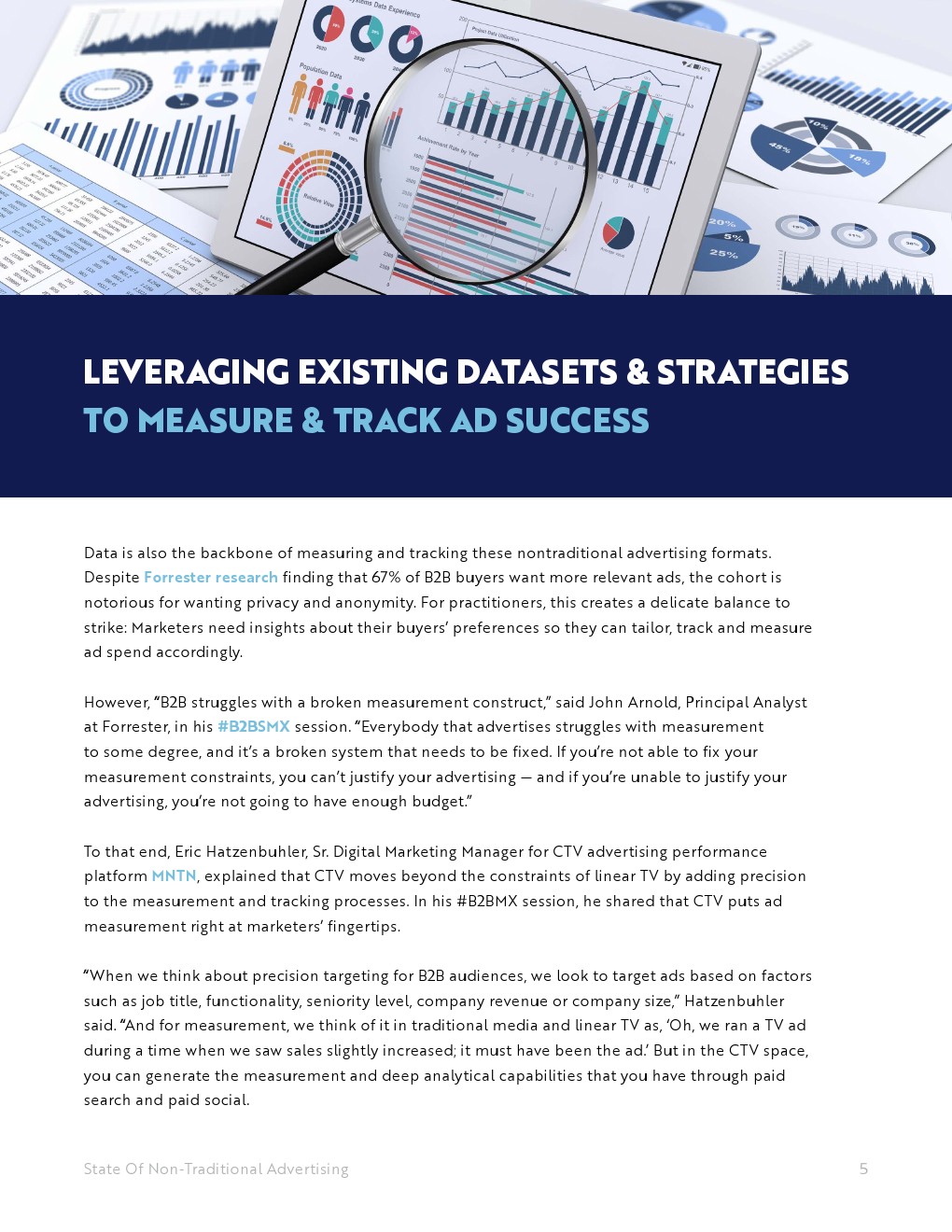 数据也是测量和跟踪这些非传统广告形式的支柱。尽管Forrester的研究发现,67%的B2B买家希望看到更相关的广告,但这一群体以希望获得隐私和匿名而臭名昭著。对于从业者来说,这创造了一个微妙的平衡:营销人员需要了解其买家偏好,这样他们就可以相应地定制、跟踪和测量广告支出。