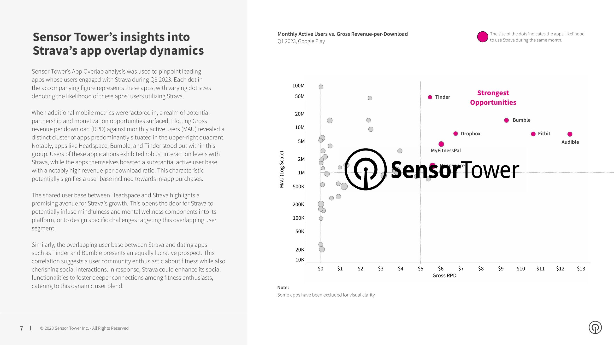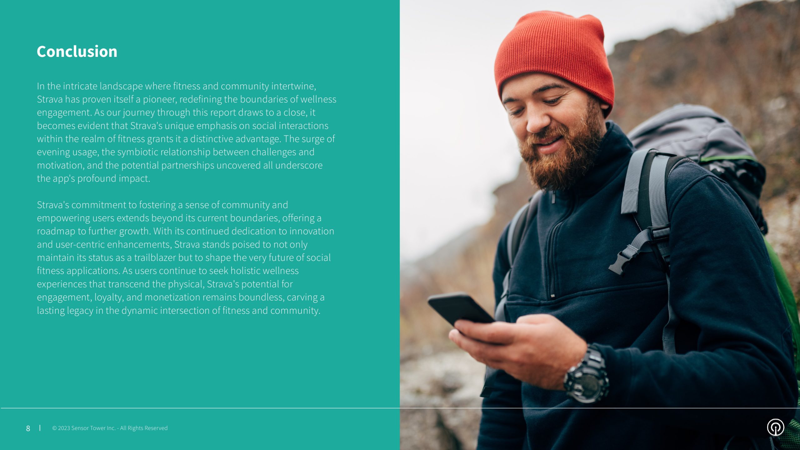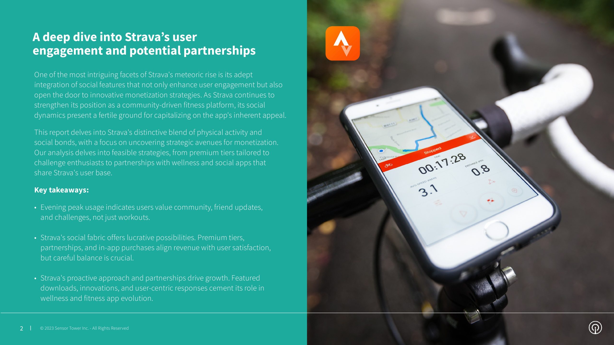 报告深入研究了Strava独特的体育活动和社交相结合的设计,重点是发现盈利的战略途径。分析深入研究了可行的策略,从为挑战爱好者量身定制的高级服务,到与共享Strava用户群的健康和社交应用合作。