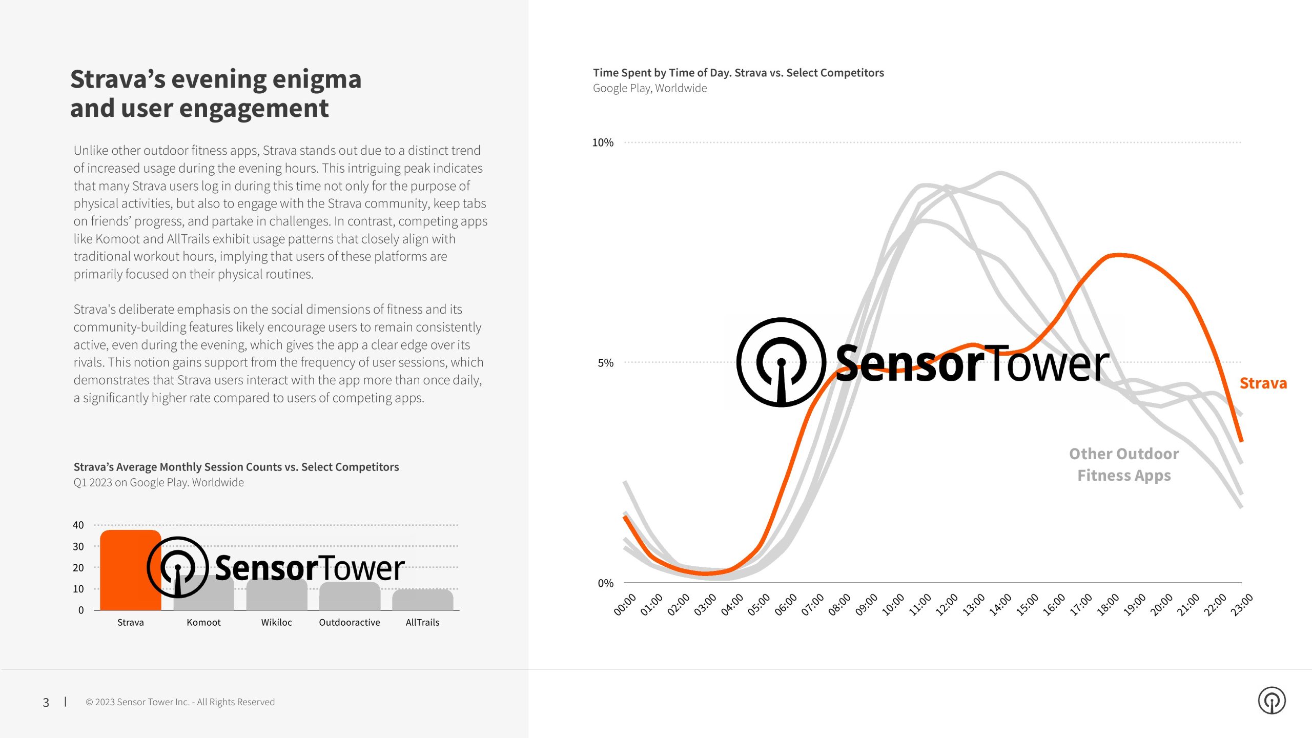 晚间使用高峰表明用户重视社区、好友更新和挑战,而不仅仅是锻炼。