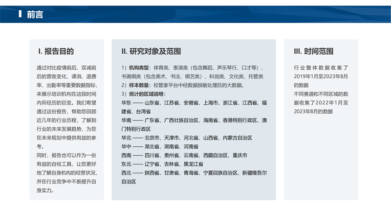 校管家:2023年8月线下培训教育行业运营数据报告 更多阅读:乐普医疗新冠病毒抗体胶体金法检测试剂盒、红外测温仪等产品已供往数十国家Demand Gen :制造商将数字转换扩展到销售和营销报告CCFA:2019年中国超市百强前程无忧:2021年Q1集成电路/半导体市场供需报告数字之旅的时代启幕——空间计算中电联:2021中国电力行业年度发展普洛斯:物流园规划设计的发展趋势京东无人机:2017-2018年世界物流无人机产业发展年度报告51Testing:2017软件测试行业调查PCMag:新iPhoneX等手机即将发布 可消费者却没那么兴奋2017百度世界大会PPT腾讯互娱:2017年Q3 AI 行业热度观察获取潜在客户、实现高ROI,在这里遇见更多可能! | “2019环球旅讯峰会”合作伙伴招募新榜研究院:2018年演讲平台行业研究报告工信部:2020年1-11月软件和信息技术服务业主要指标分省表