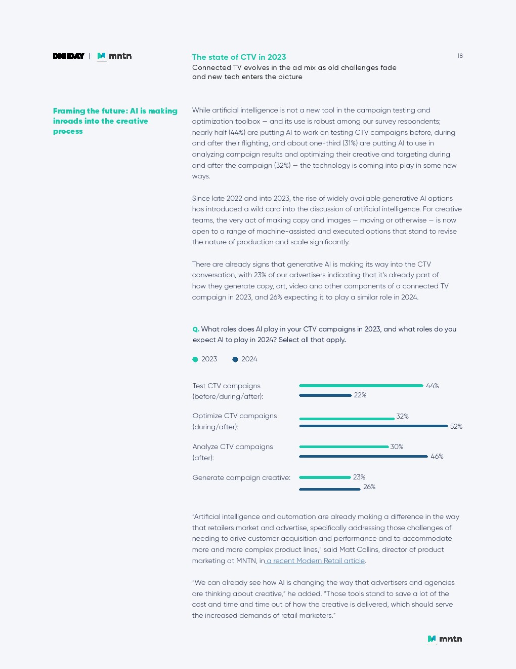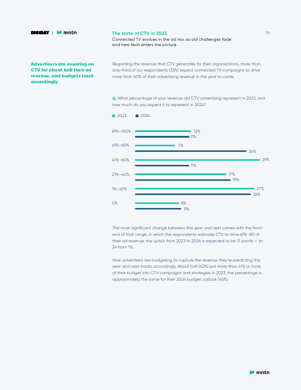 Digiday发布了“2023年联网电视报告”。联网电视(CTV)的广告预算正在上升,弥补了传统电视支出下降带来的缺口。但是,CTV资金不太可能像几年前那样从传统电视预算中转移而来。