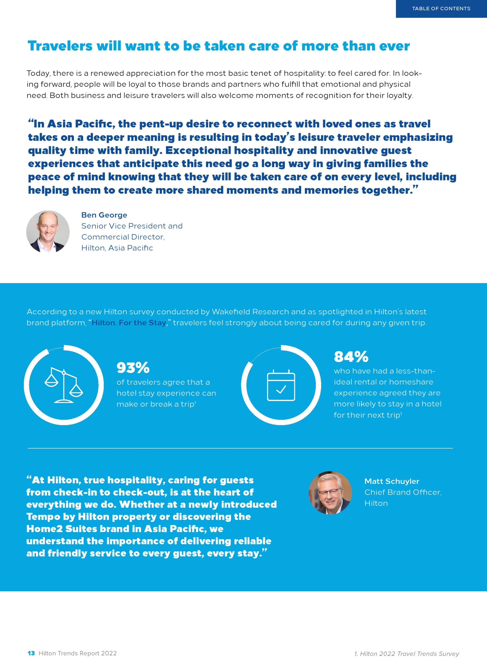 明年,人们将重新认识到待客之道的最基本原则:感到被关心。游客会忠于那些满足他们情感和身体需求的品牌和合作伙伴,并欢迎个性化的时刻。