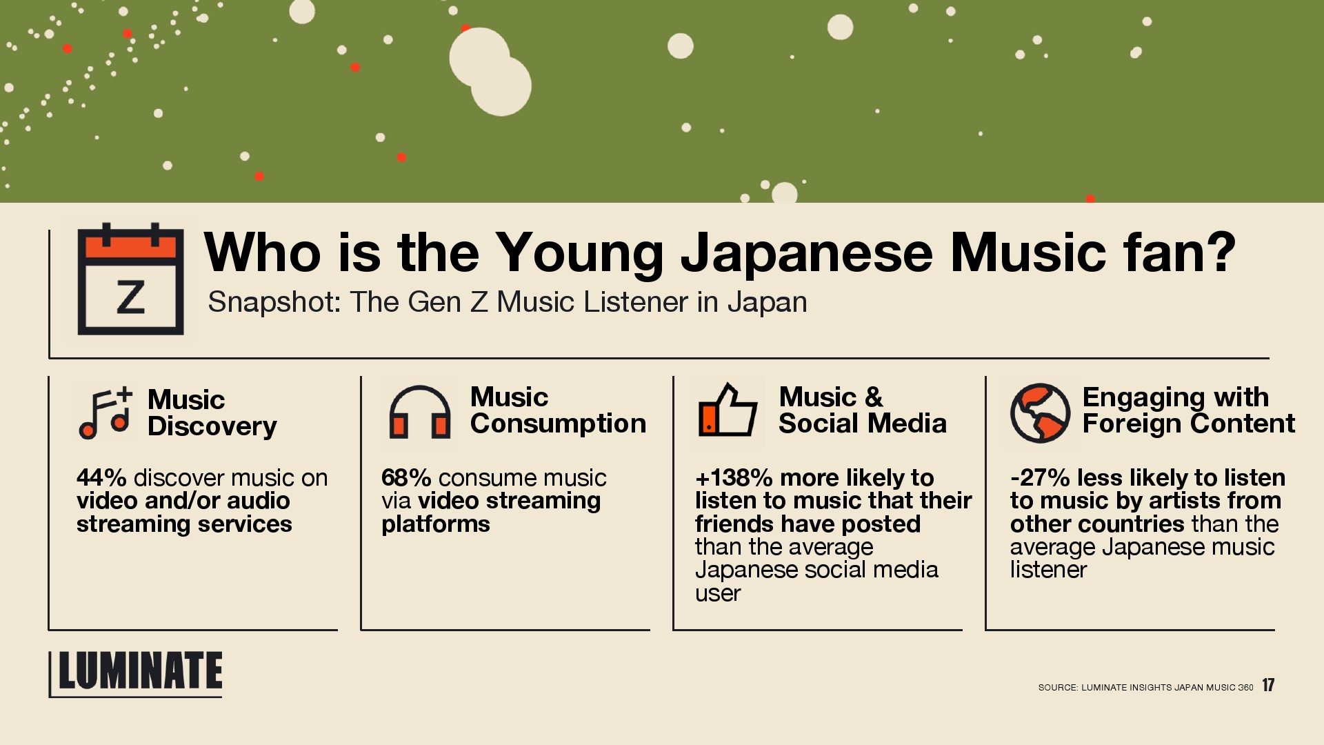 日本68%的Z世代音乐听众是流媒体音乐用户。