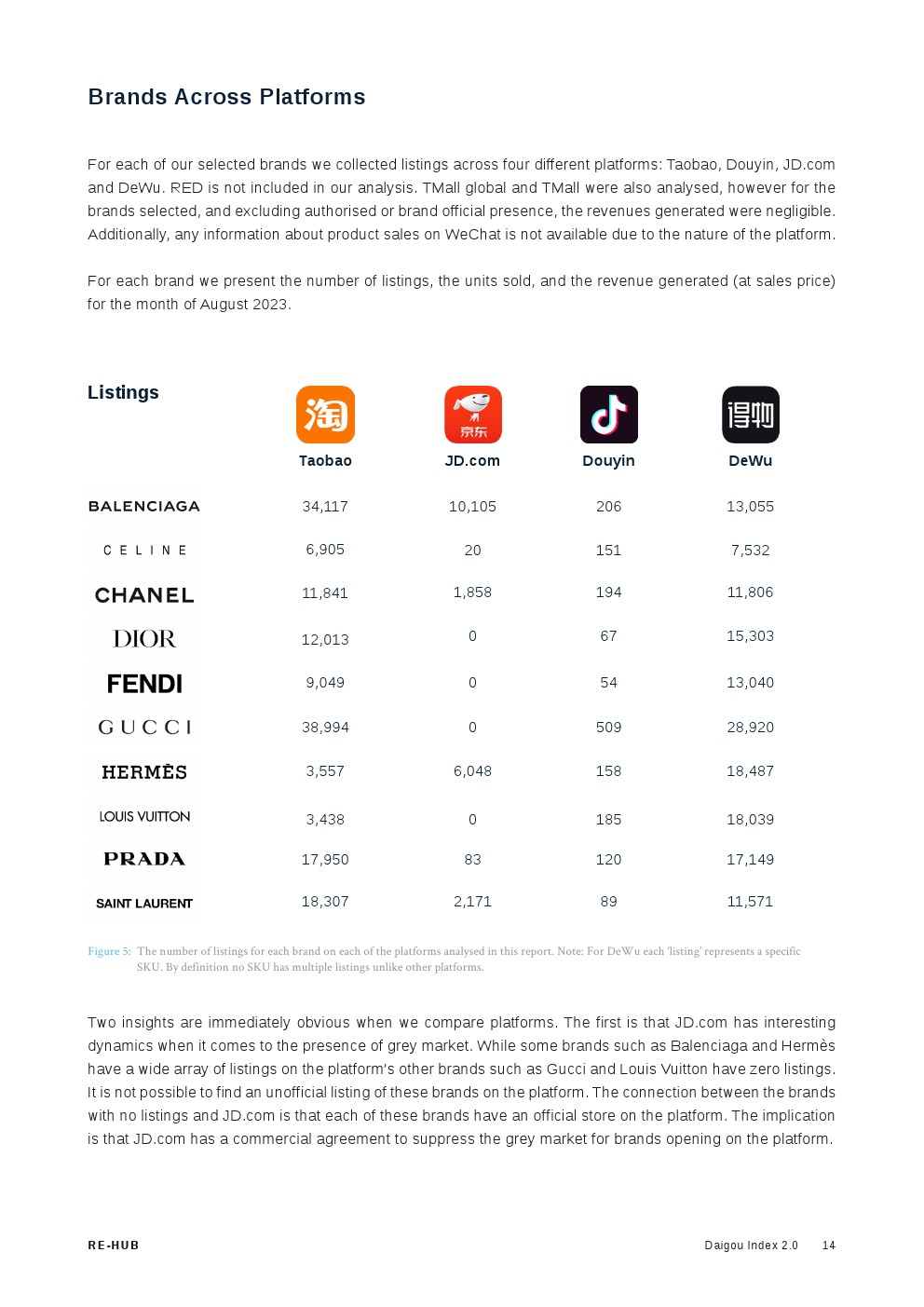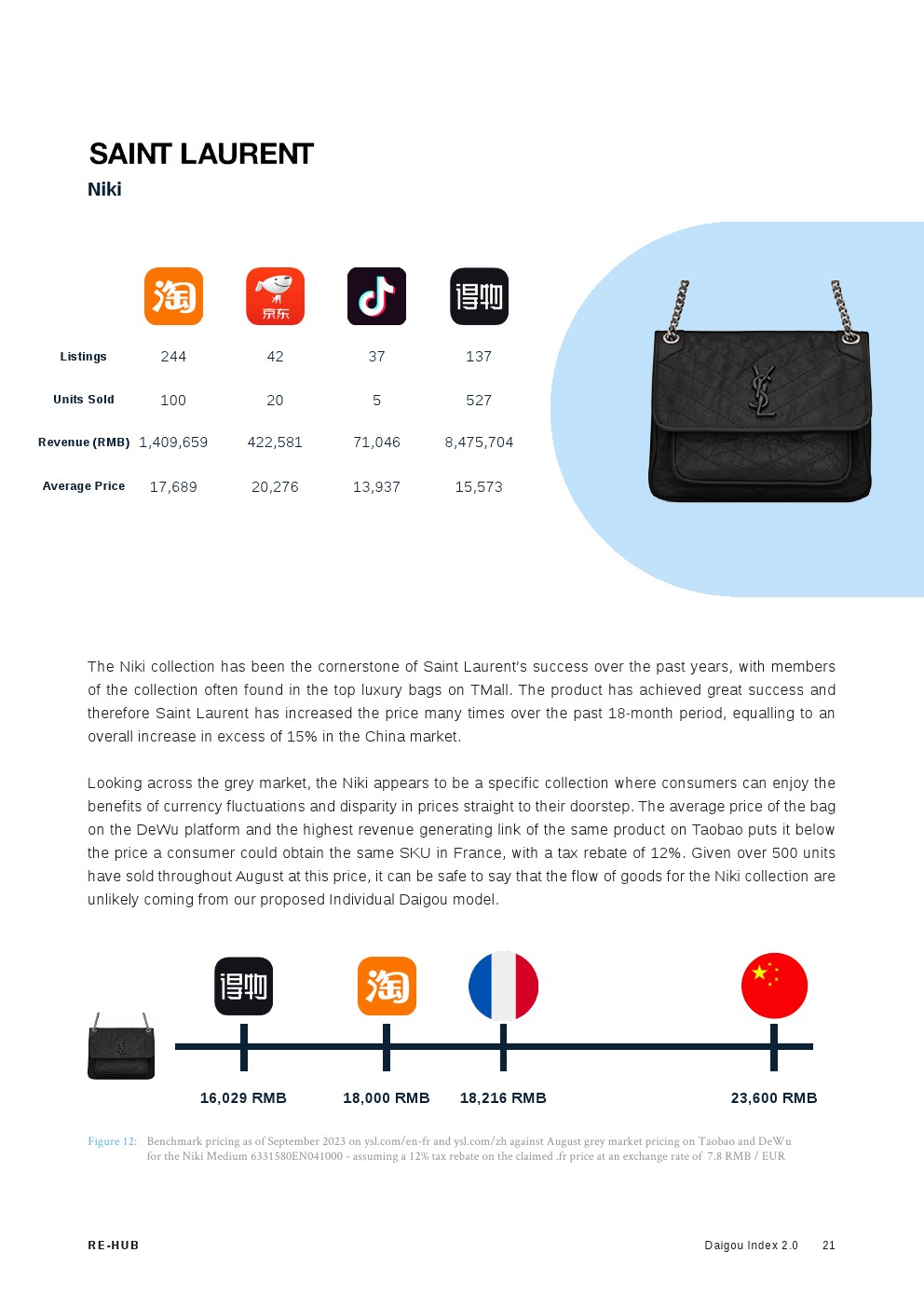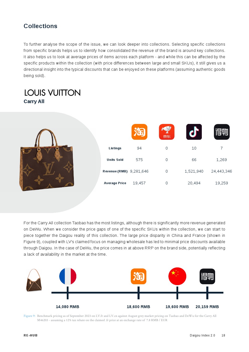 收入集中在英雄、常青树风格的产品上,大多数品牌都希望在商店里销售这些产品。与中国建议零售价相比,价格差异从溢价到50%的折扣不等。这与品牌溢价感知和品牌对批发管理的关注密切相关。