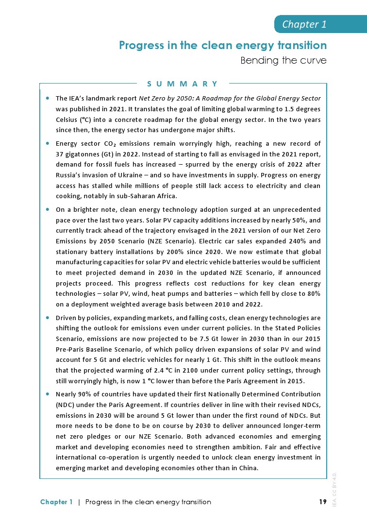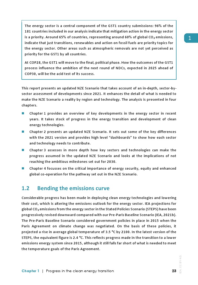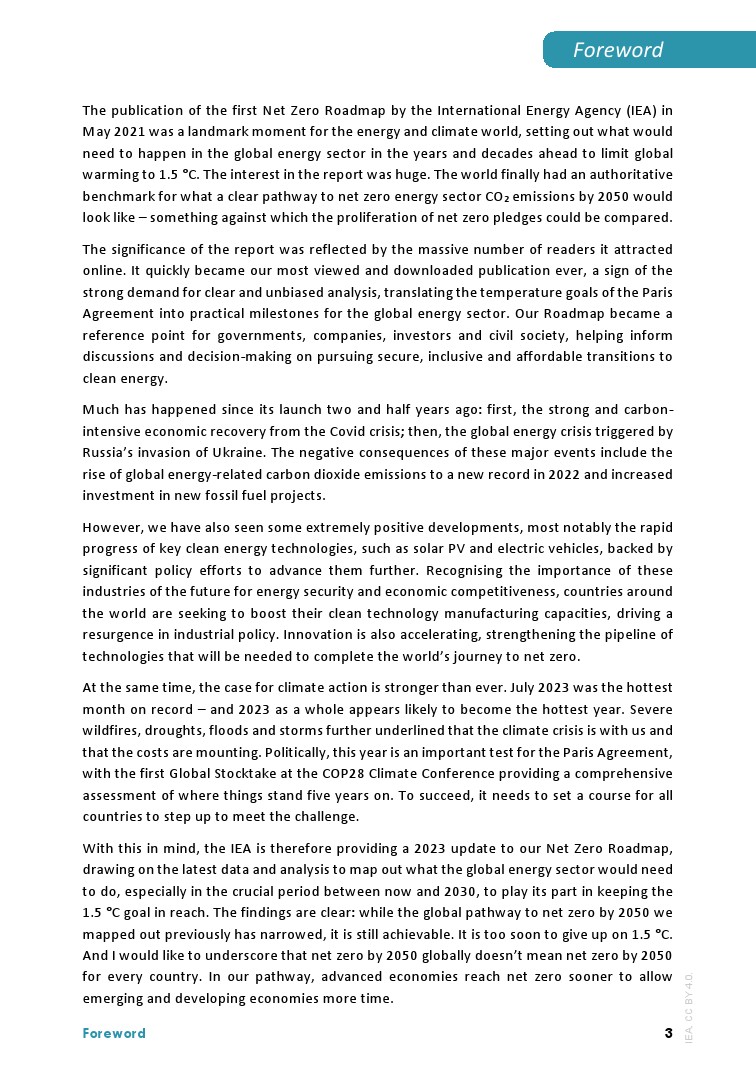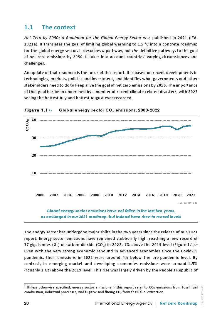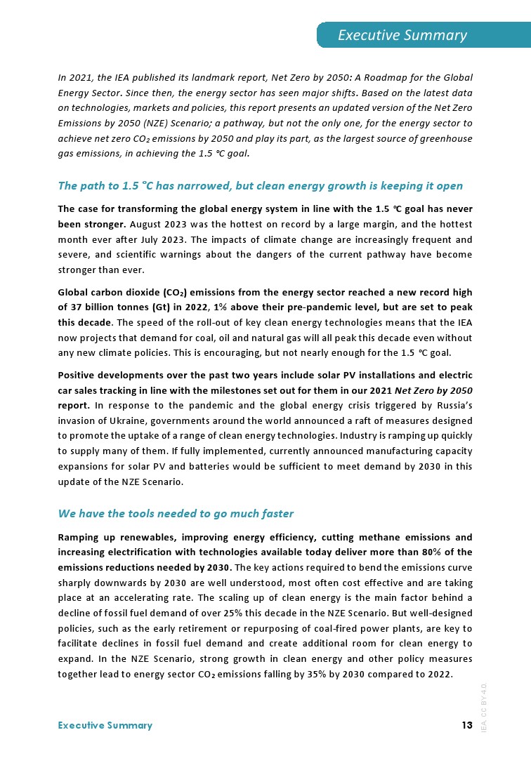 IEA发布了最新的”净零排放路线图2023年更新“,分析了实现1.5摄氏度升温目标的全球途径: