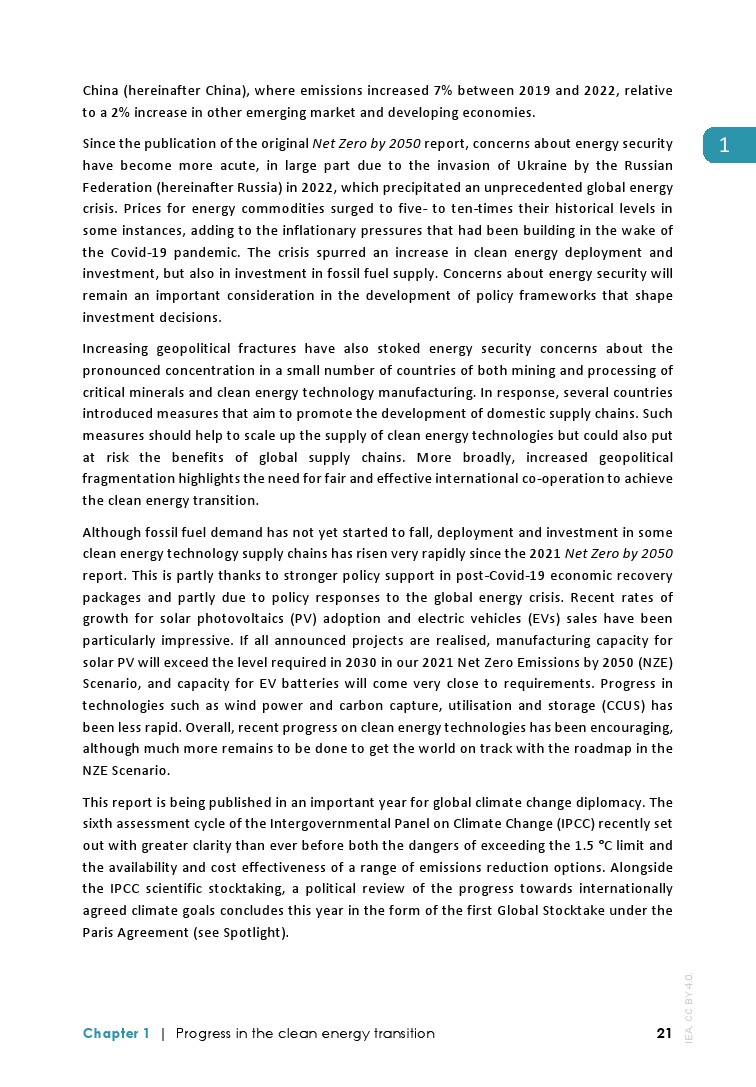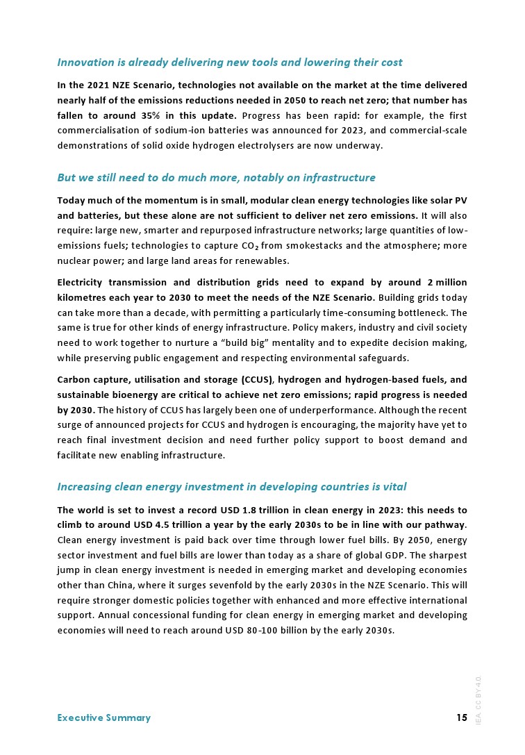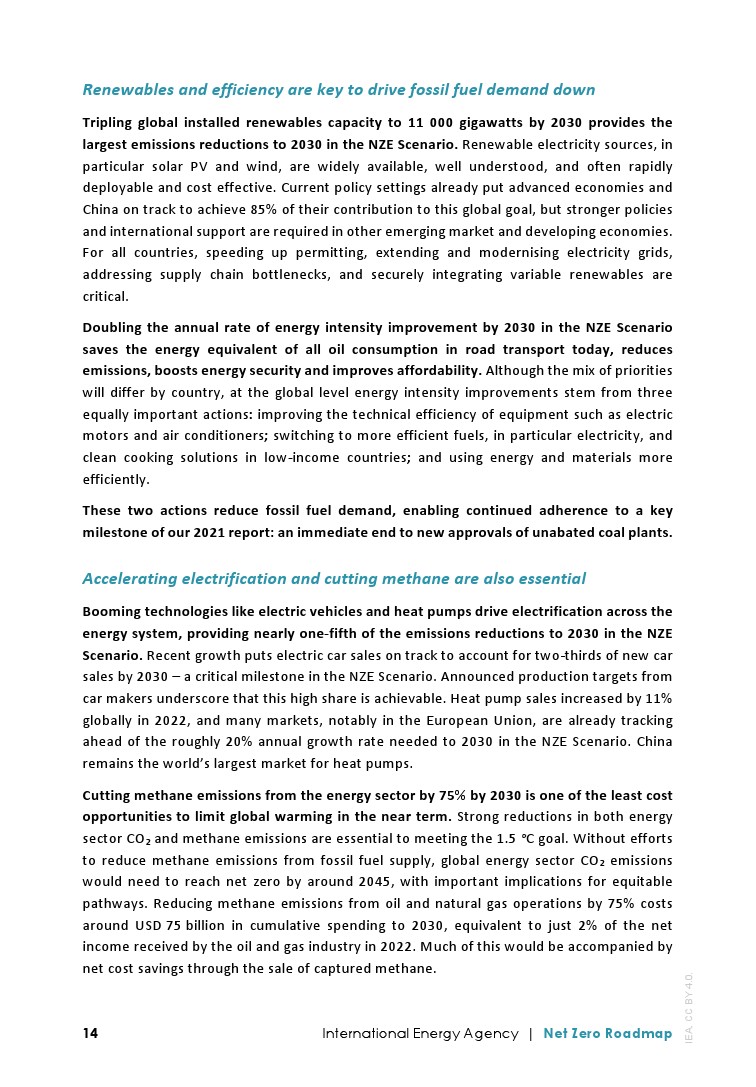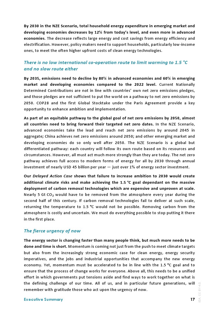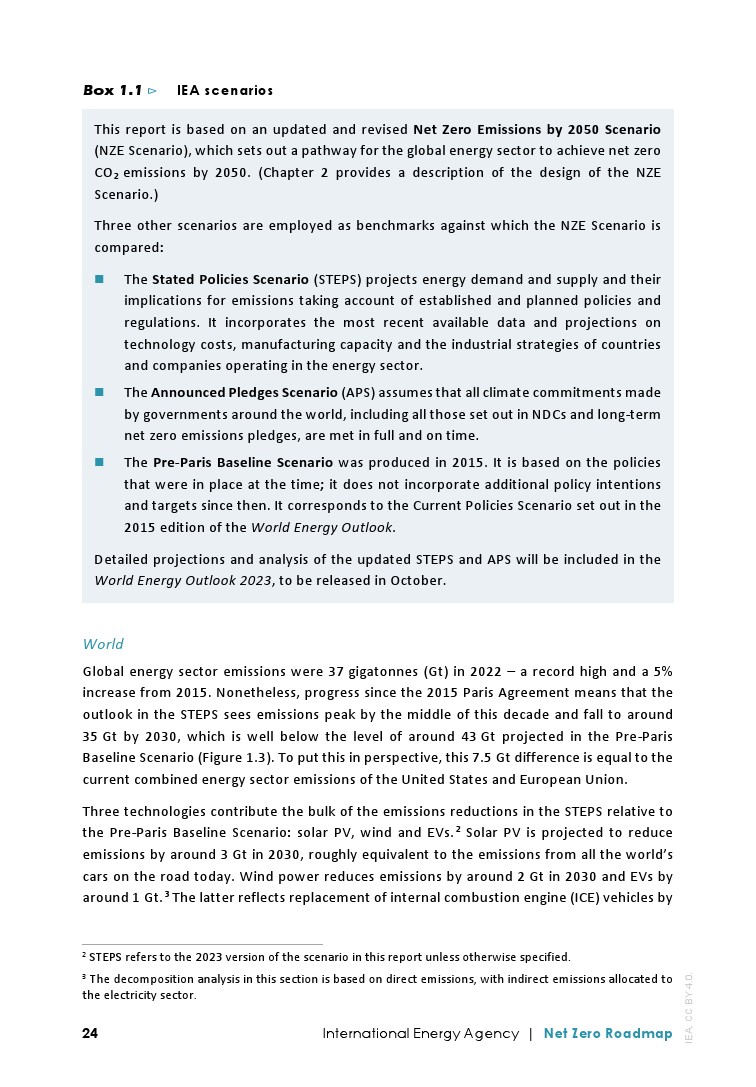 IEA发布了最新的”净零排放路线图2023年更新“,分析了实现1.5摄氏度升温目标的全球途径:
