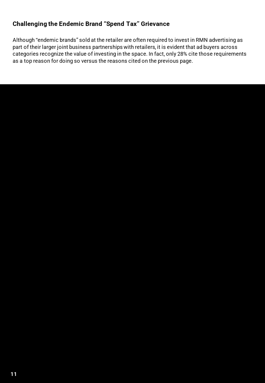 在零售商处销售的流行品牌认为渠道的价值超出了他们所要求的支出承诺:只有28%的RMN广告买家将他们对零售商广告支出的要求作为投资的首要原因。