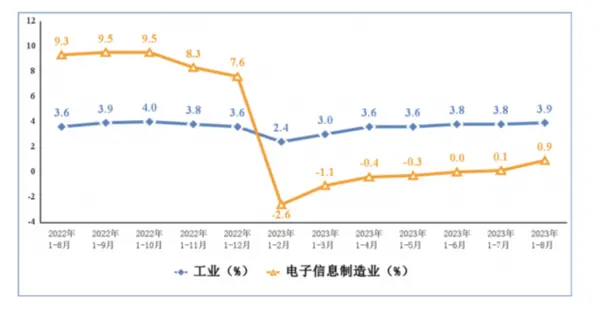 此外,1-8月份,电子信息制造业固定资产投资同比增长9.5%,比同期工业投资增速高0.7个百分点,但比高技术制造业投资增速低1.7个百分点。