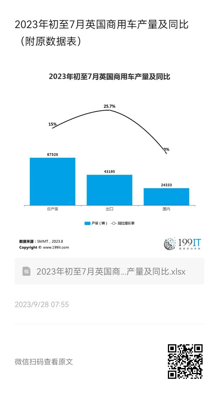 2023年初至7月英国商用车产量及同比(附原数据表) ​​​