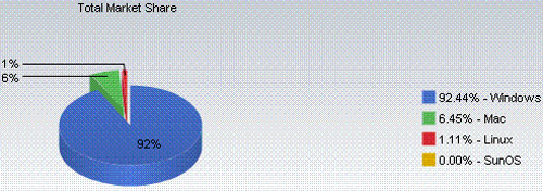NetApplications 例行发布了2011年9月份的操作系统与浏览器市场份额统计数据。此次Mac OS在操作系统市场中获得的一年以来最高的增长,使用Mac OS系统的用户已经占到了6.45%.