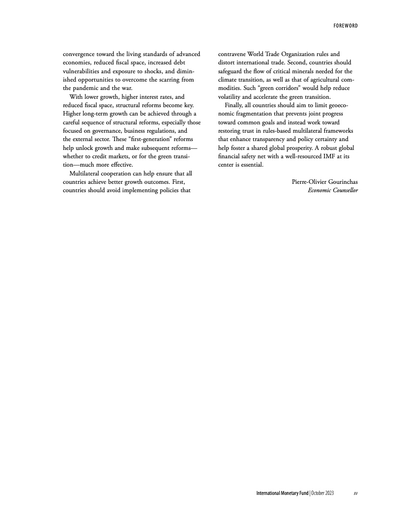 报告指出,在经济增长放缓、利率上升和财政空间缩小的情况下,结构性改革已成为了关键。多边合作有助于确保各国取得更好的增长成果。各国应避免实施违反世界贸易组织规则和扭曲国际贸易的政策。此外,各国应保障气候转型所需的关键矿物以及农产品的顺畅流动。这种“绿色走廊”将帮助降低波动性并加速绿色转型。