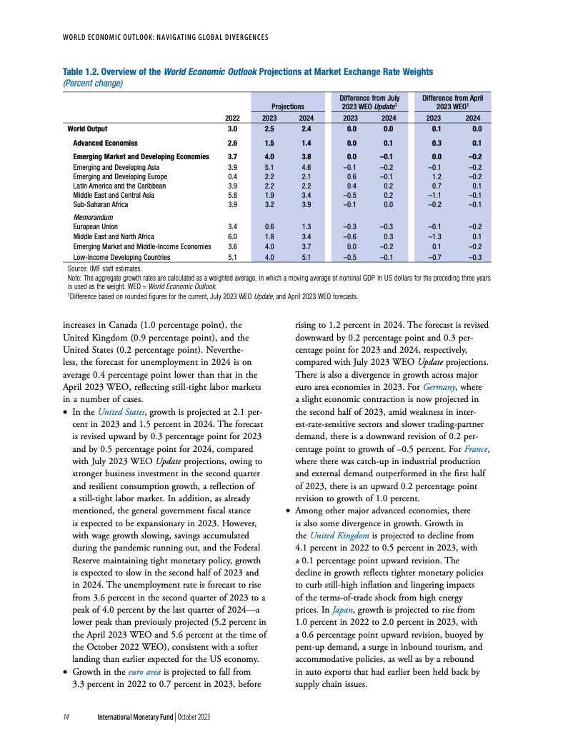 在发达经济体,随着政策收紧开始产生负面影响,经济增速预计将从2022年的2.6%放缓至2023年的1.5%和2014年的1.4%。美国增长前景改善,其消费和投资展现出了韧性,2023年经济增速预计为2.1%;相比之下,欧元区经济活动的预测值则被下调至0.7%,其中,德国预测值仅为-0.5%。