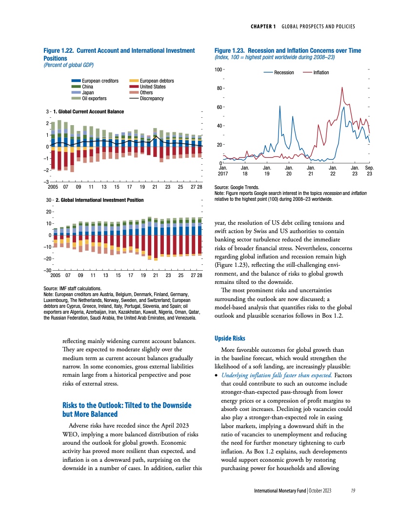 由于货币政策收紧,加之国际大宗商品价格下跌,预计全球通胀率将从2022年的8.7%稳步降至2023年的6.9%和2024年的5.8%。总体来看,核心通胀(不包括粮食和能源价格)预计也将下降,不过速度慢于总体通胀,2024年将达到4.5%。大多数国家的通胀预计要到2025年才能回到目标水平。