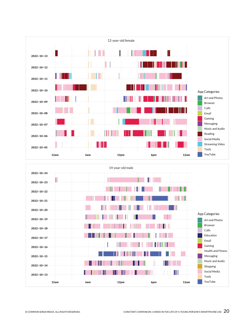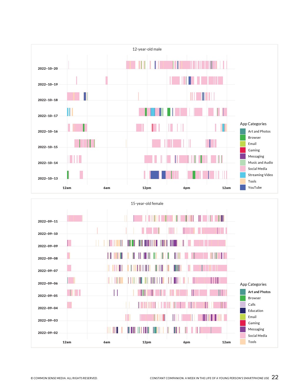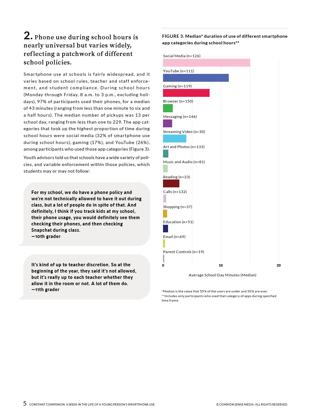 23%的通知是在上学时间收到的,这表明手机和应用程序可以更好地消除一天中干扰年轻人的不必要的信号。在上学期间,几乎所有的参与者都至少使用过一次手机,平均时间为43分钟,最长的超过6小时。