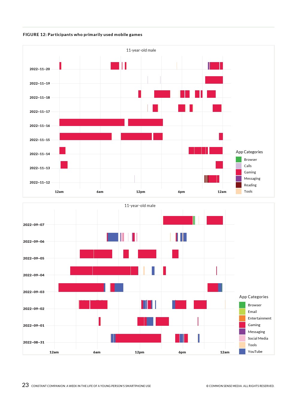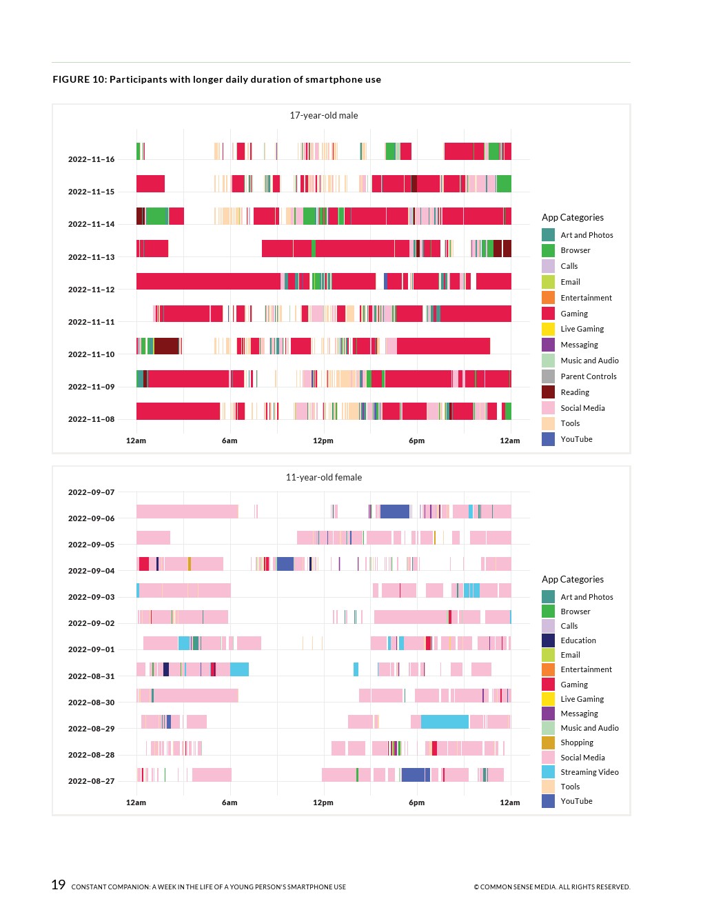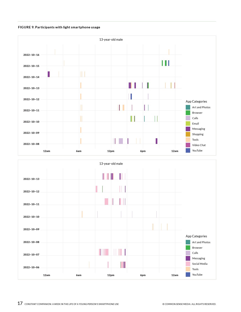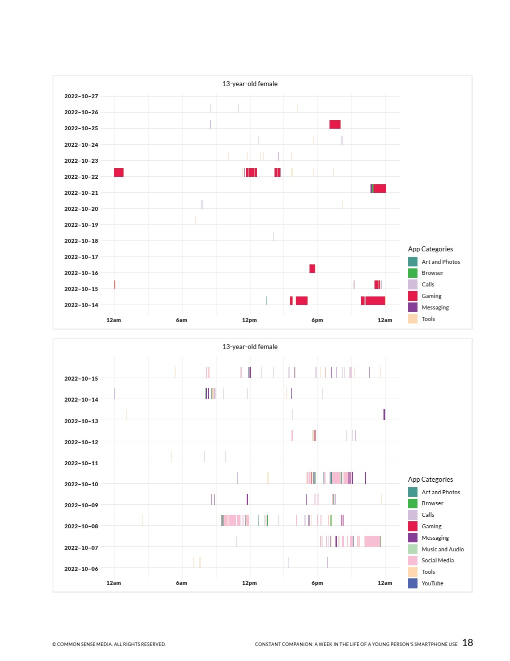 23%的通知是在上学时间收到的,这表明手机和应用程序可以更好地消除一天中干扰年轻人的不必要的信号。在上学期间,几乎所有的参与者都至少使用过一次手机,平均时间为43分钟,最长的超过6小时。