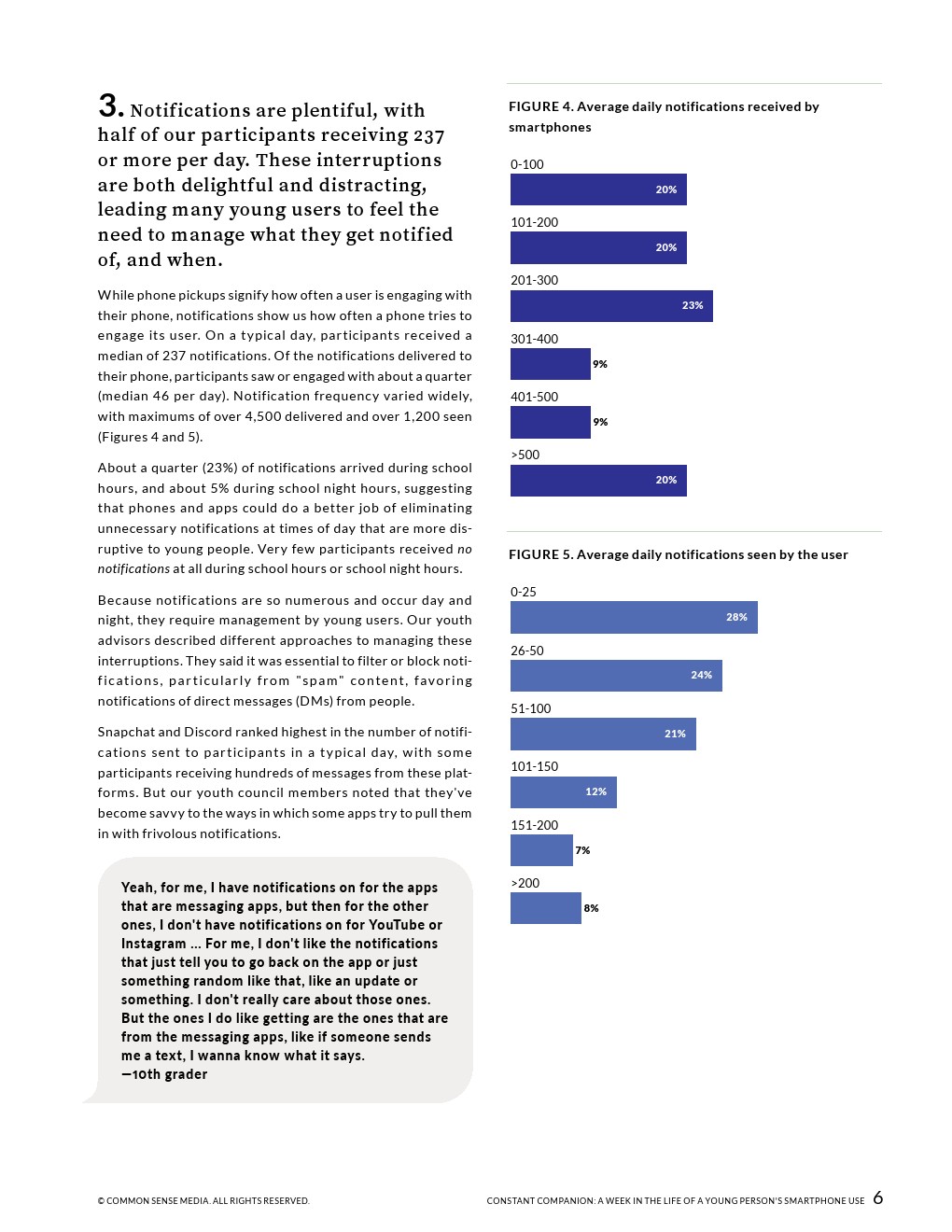 Common Sense Media发布了一份新的研究报告“2023年青少年智能手机使用报告”,青少年不断地在智能手机上接收和处理通知。超过一半的青少年每天收到237条或更多的通知。接二连三的通知,加上上学日和晚上使用智能手机,在青少年和手机之间形成了一种强大而复杂的关系。