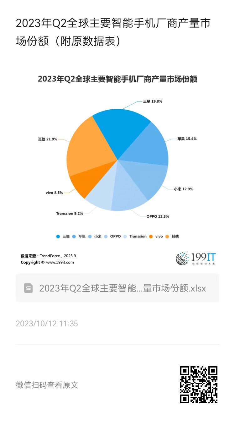 - 2023年Q3全球主要智能手机厂商产量市场份额(附原数据表)