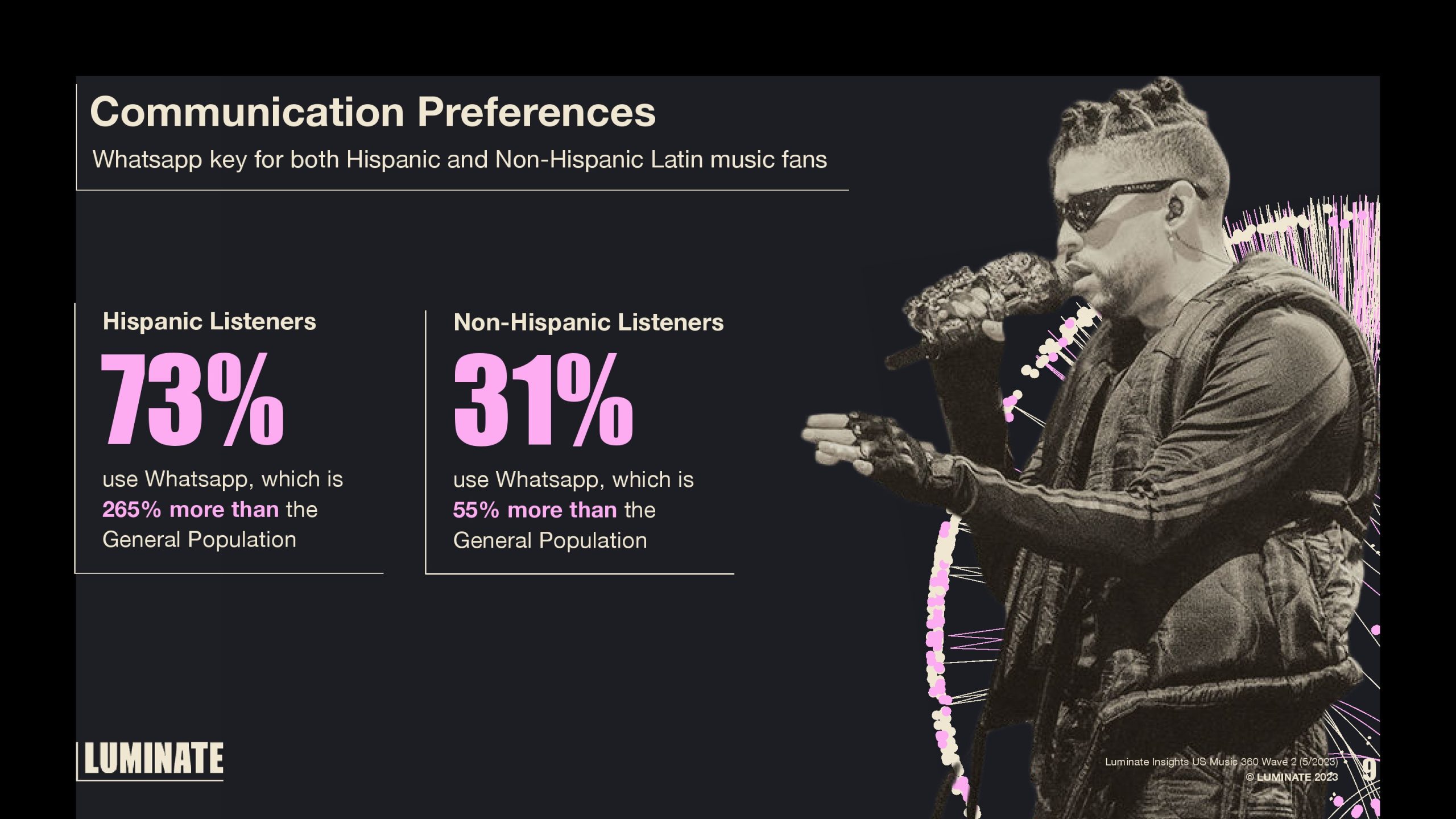 73%的西班牙裔听众使用WhatsApp,比普通人群高出265%。