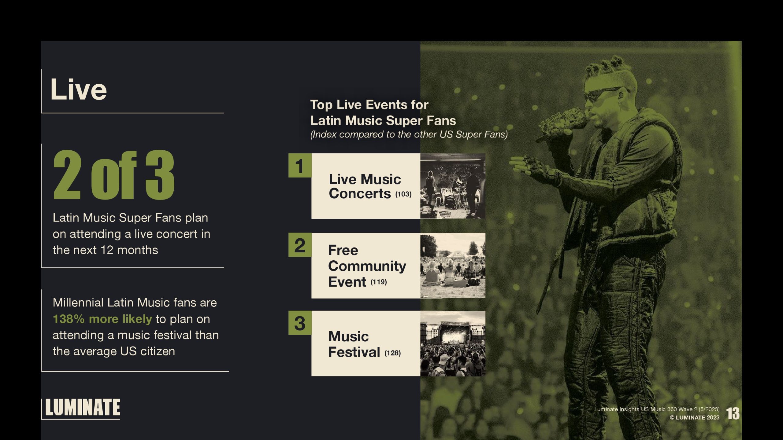 千禧一代拉丁音乐迷计划参加音乐节的可能性比普通美国人高138%。