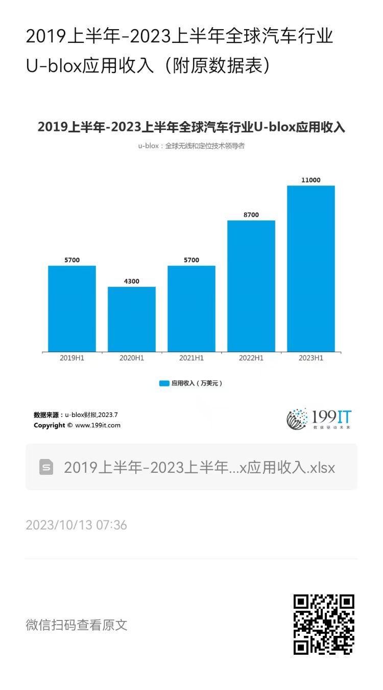 2019上半年-2023上半年全球汽车行业U-blox应用收入(附原数据表) ​​​