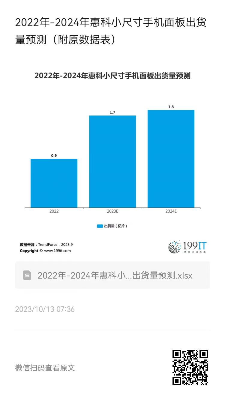 2022年-2024年惠科小尺寸手机面板出货量预测(附原数据表) ​​​