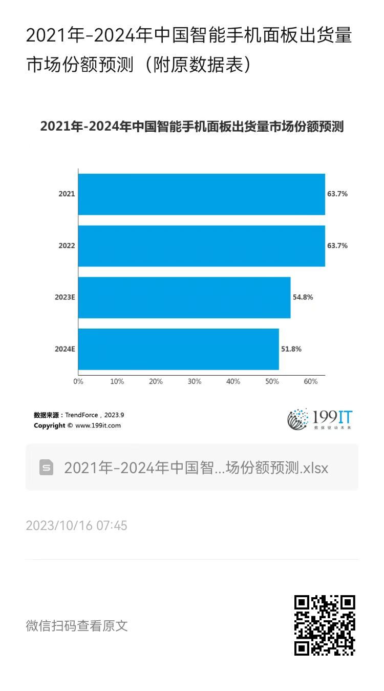 2021年-2024年中国智能手机面板出货量市场份额预测(附原数据表) ​​​