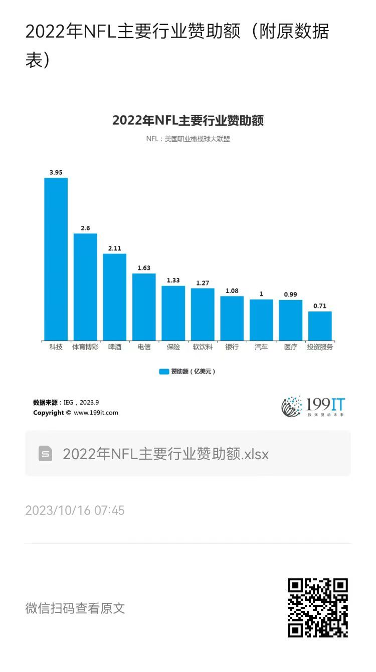 2022年NFL主要行业赞助额(附原数据表) ​​​