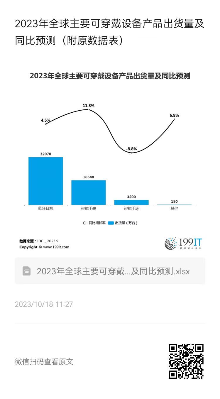 - 2027年全球主要可穿戴设备产品出货量及同比预测(附原数据表)