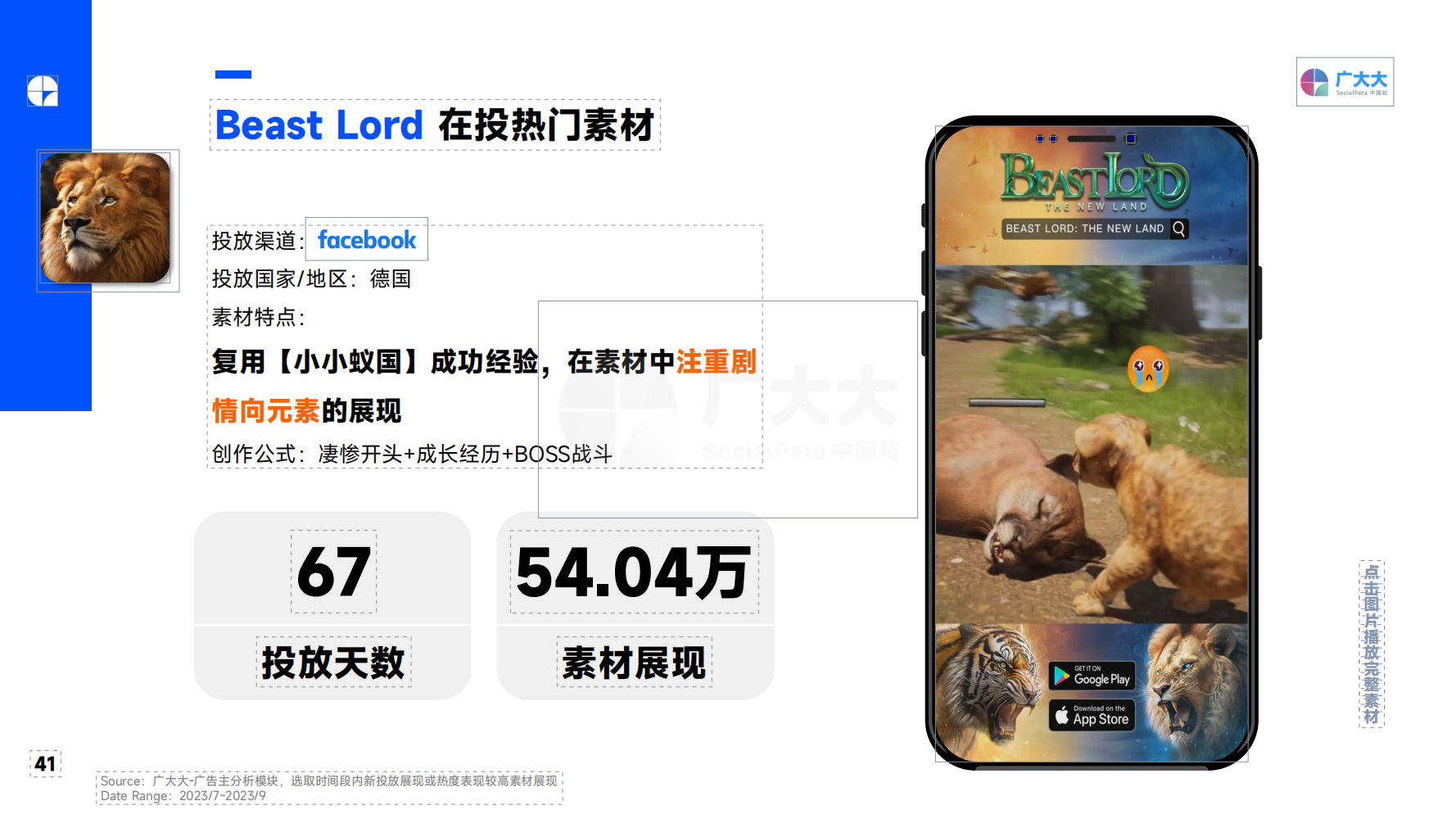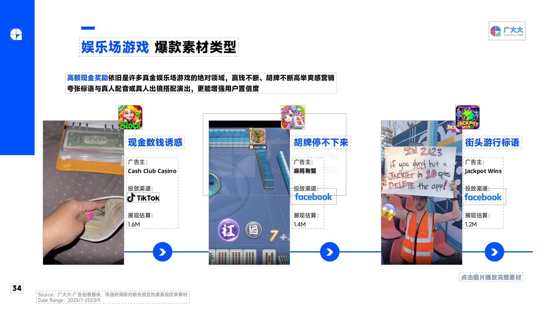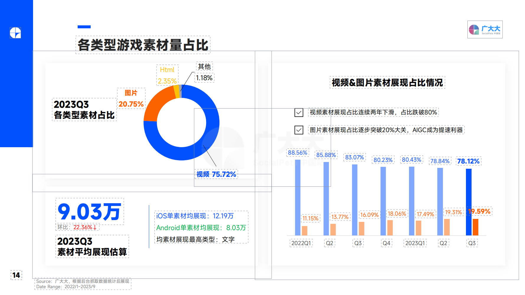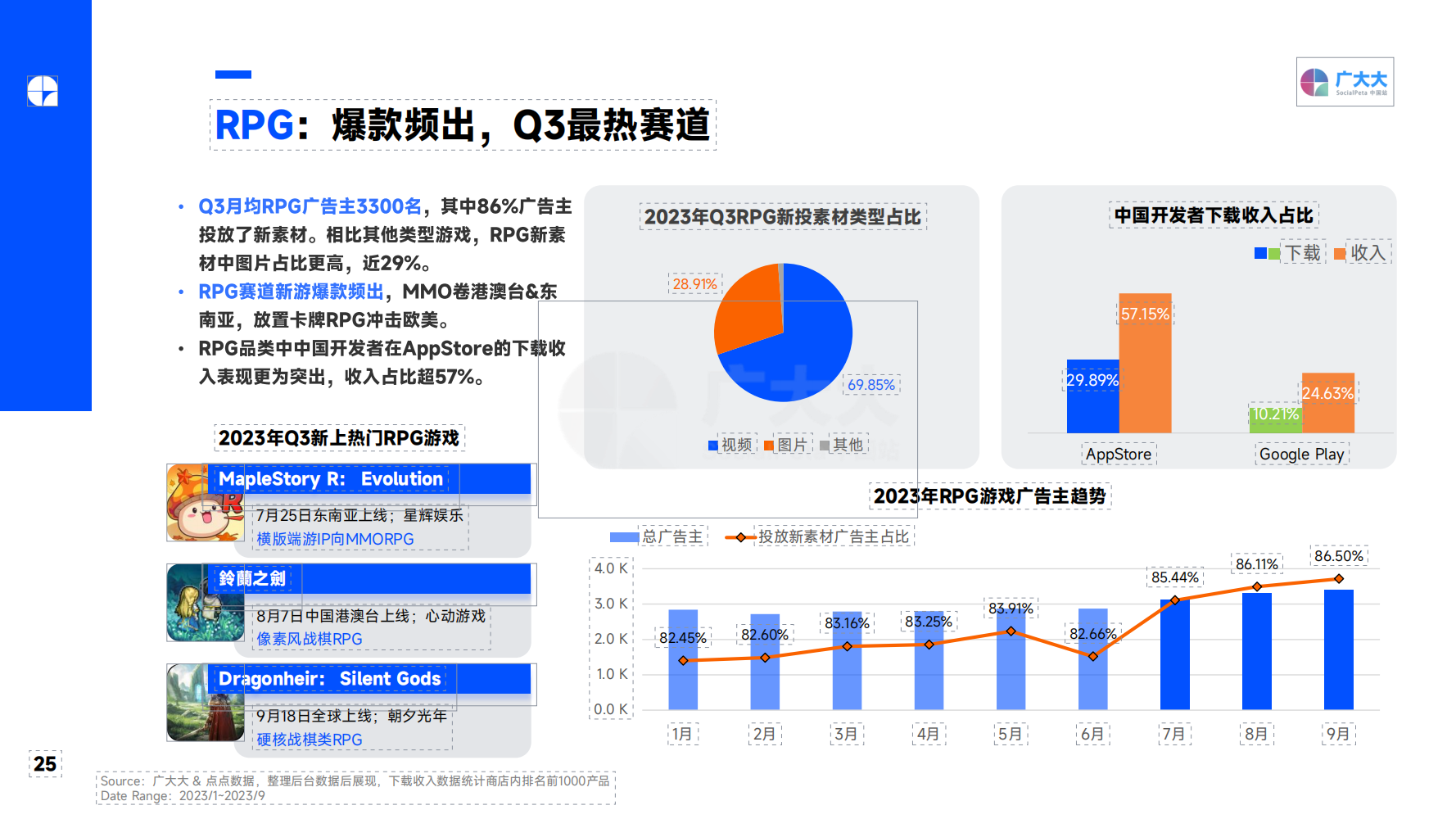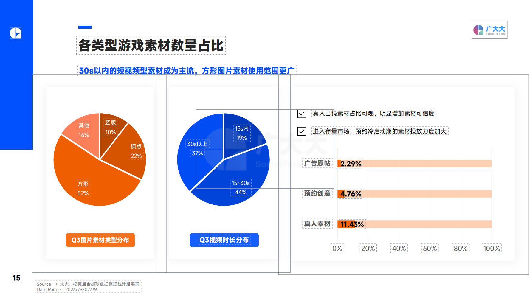 为此,广大大数据研究院联合游戏魔客共同发布《2023Q3 全球移动游戏营销趋势洞察》报告,报告中将深入分析2023年第三季度移动游戏市场的核心动态,从投放买量、素材风向、出海厂商下载/收入占比、新游营销回盘等方面对于游戏市场进行系统性地分析与归因,为游戏开发者、素材优化师、游戏厂商们提供最新最全的出海游戏营销地图。
