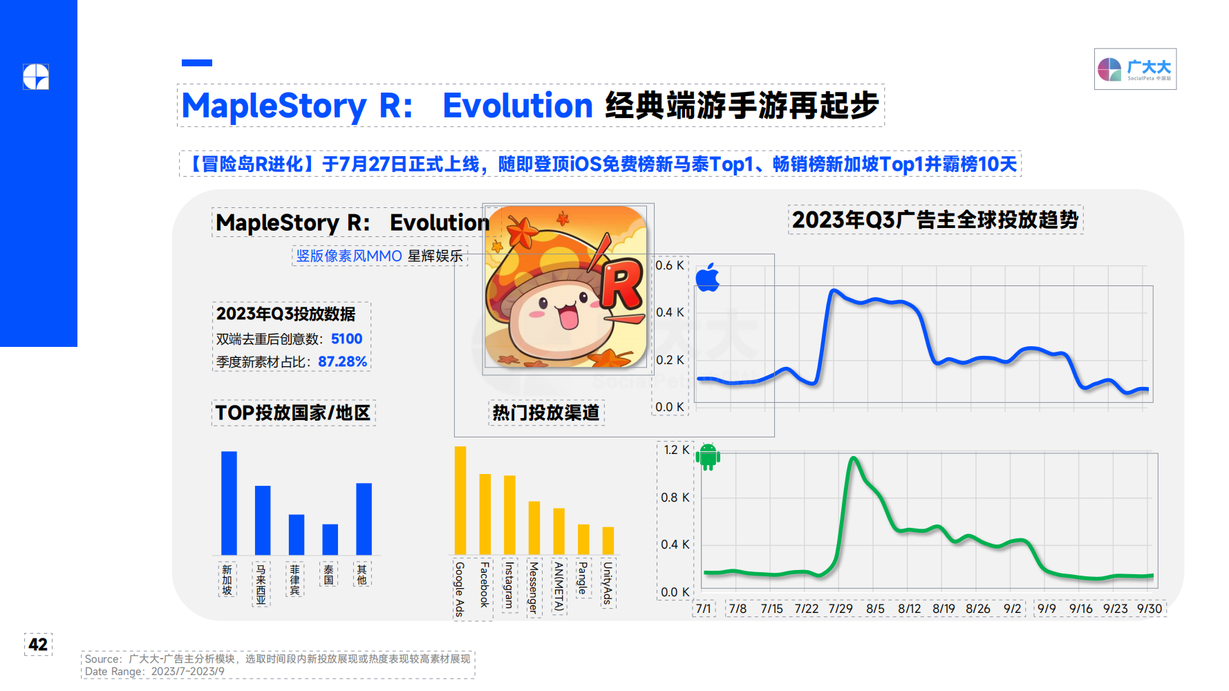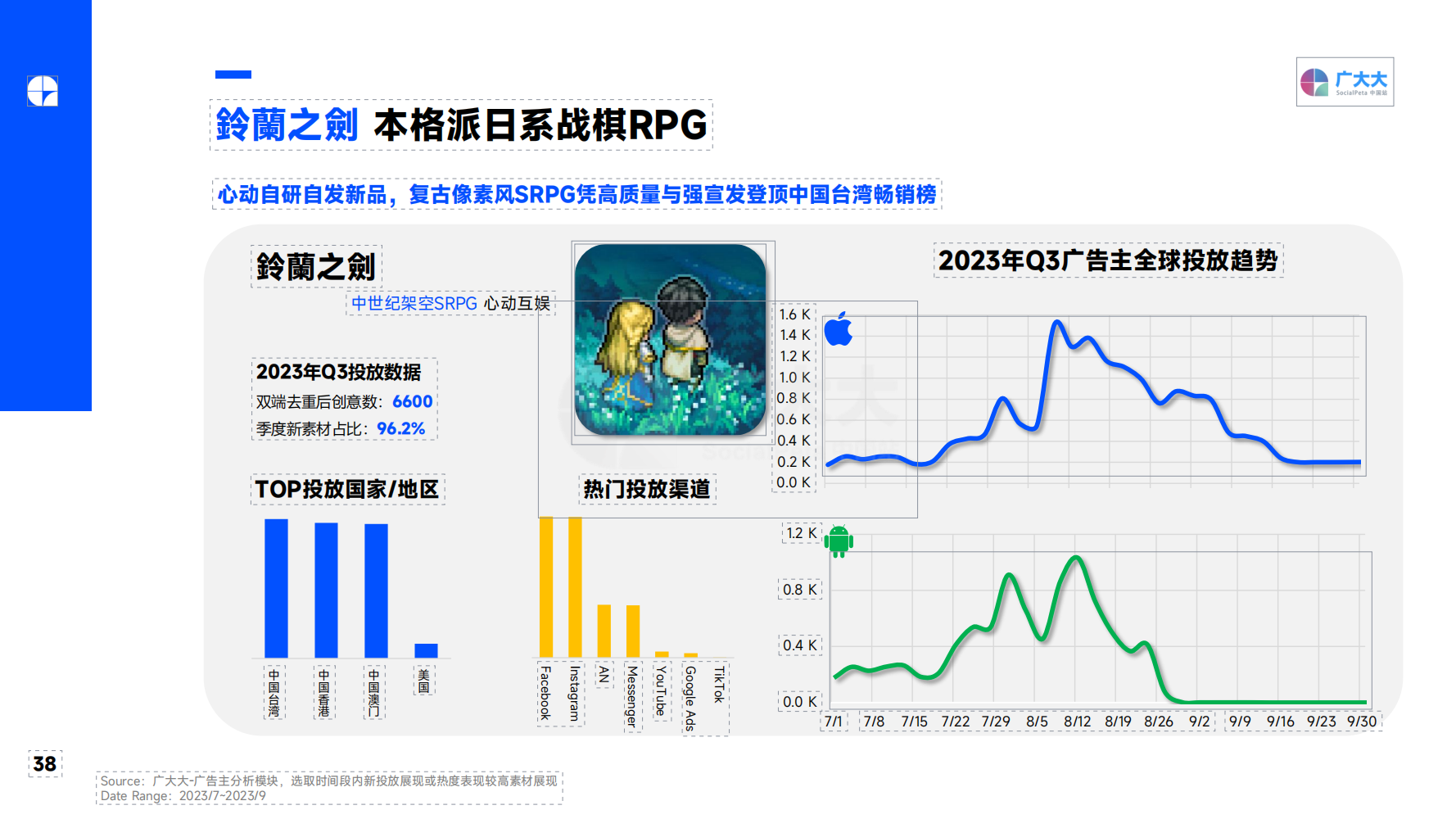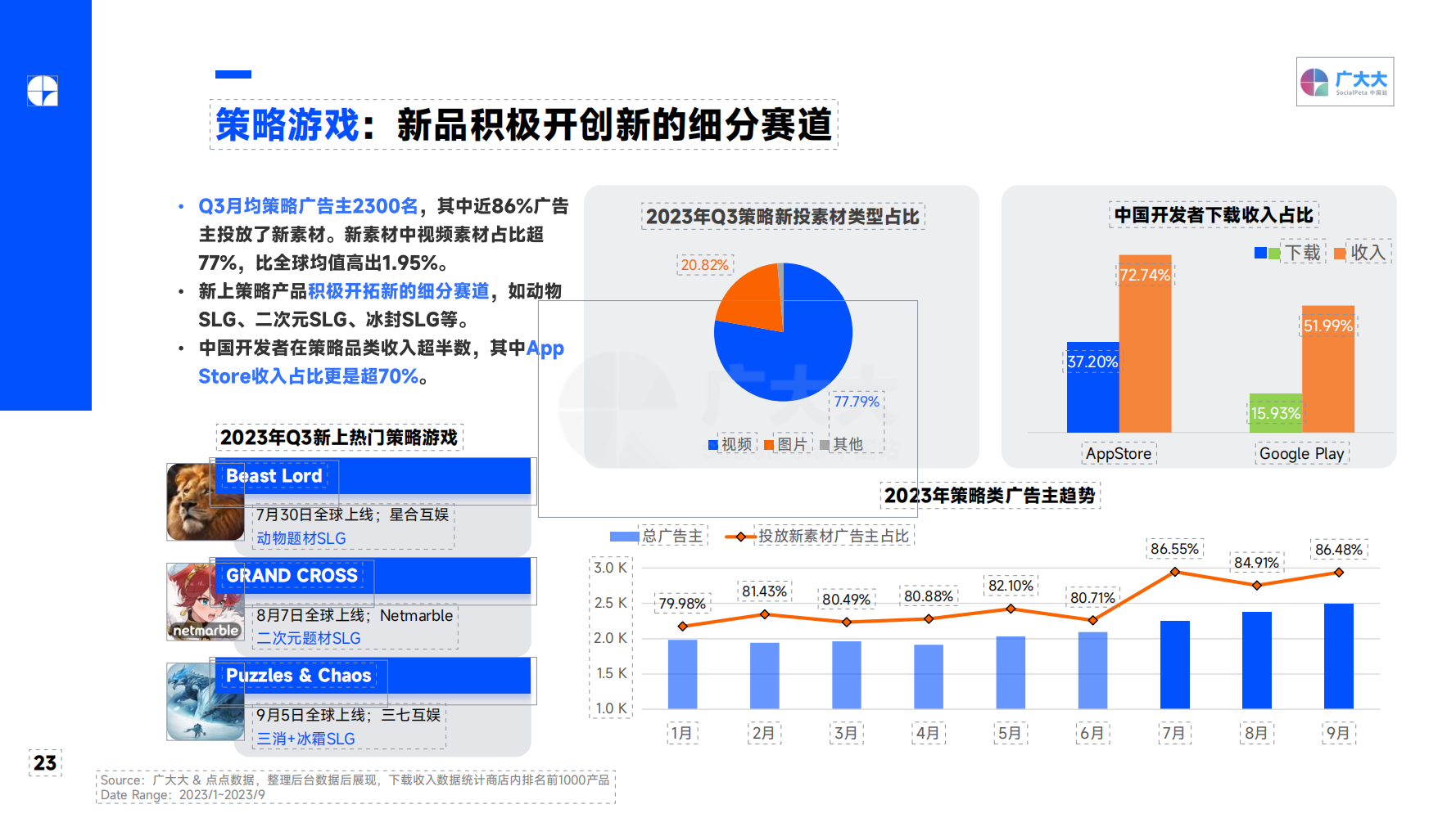 尽管竞争依旧激烈,唱衰之声屡见不鲜,但全球游戏市场仍在孜孜不倦寻找新增长点,而Q3也正是2023年目前投放、营收、下载数据最为优秀,新品最为丰富的一段时间,称之为游戏市场的全面复苏也不为过。