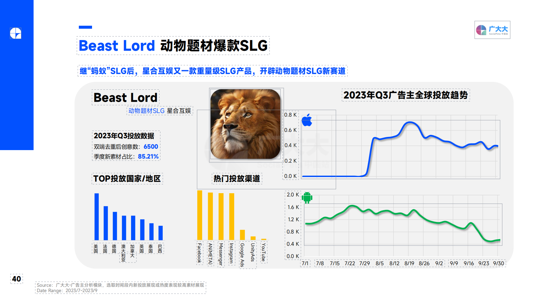 而在游戏市场“全线加速”的当下,如何抓住买量广告的最新动态、如何抢先占据蓝海市场、如何把握细分品类游戏玩法创新趋势等老生常谈的致命难题,也在Q3有了一番全新诠释。