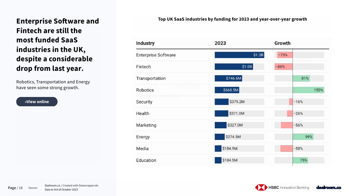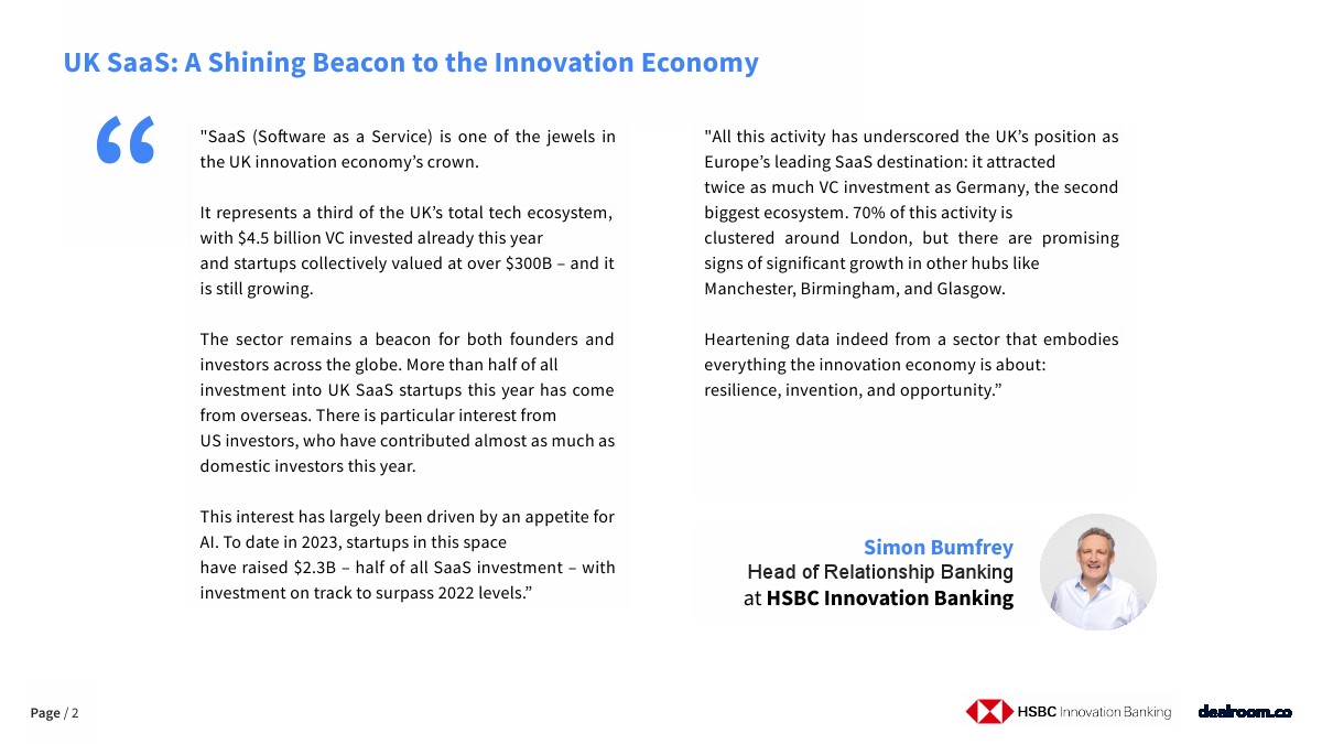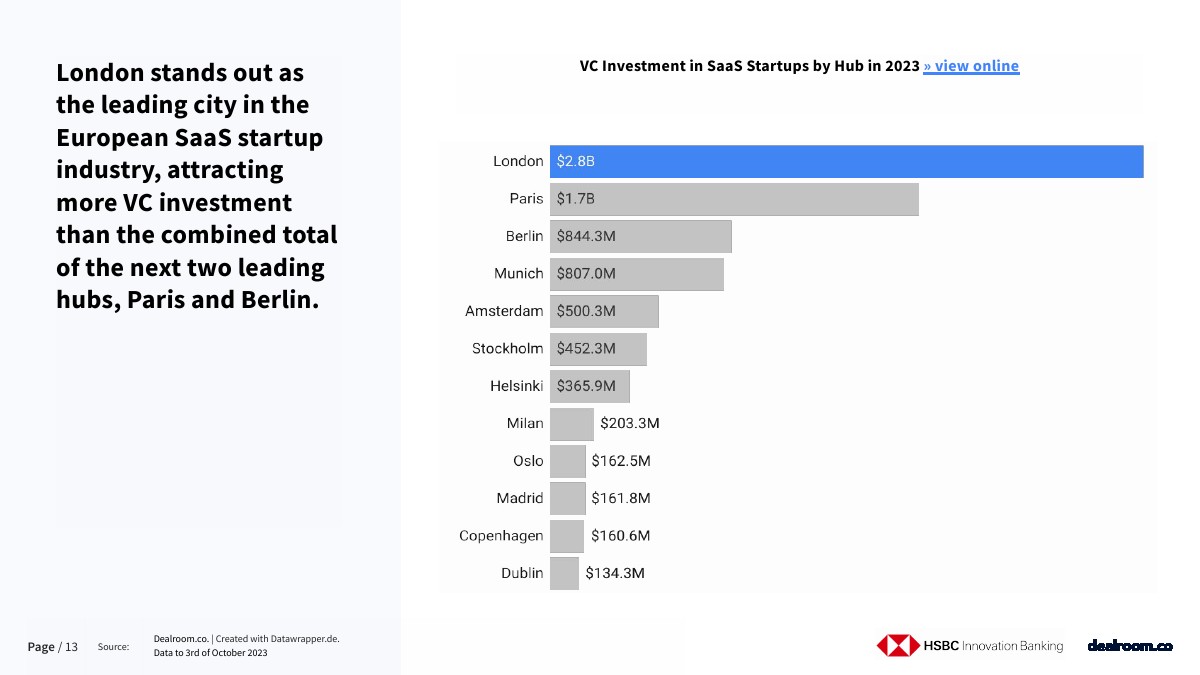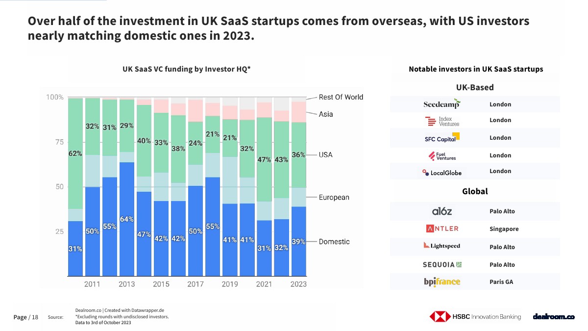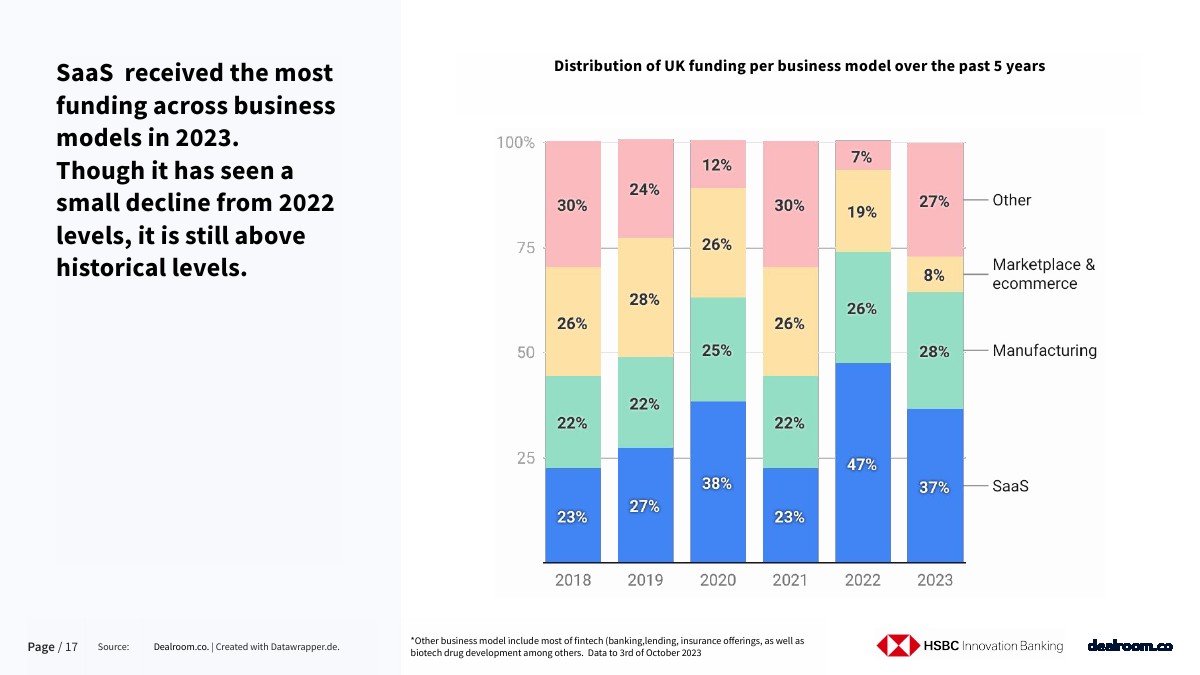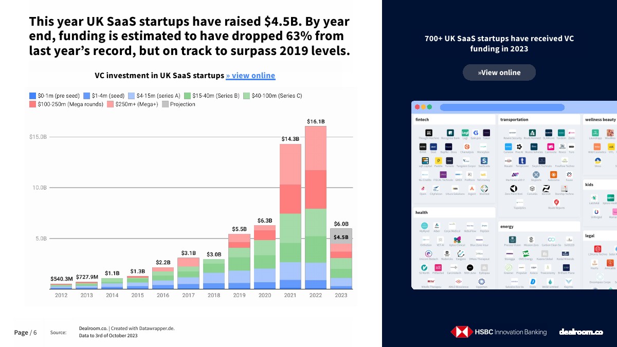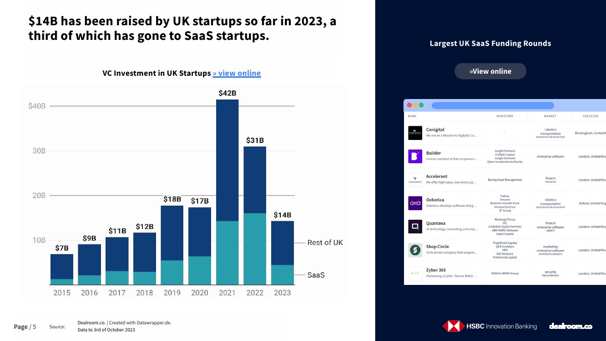 到目前为止,英国初创公司在2023年已经筹集了140亿美元,其中1/3流向了SaaS初创公司。