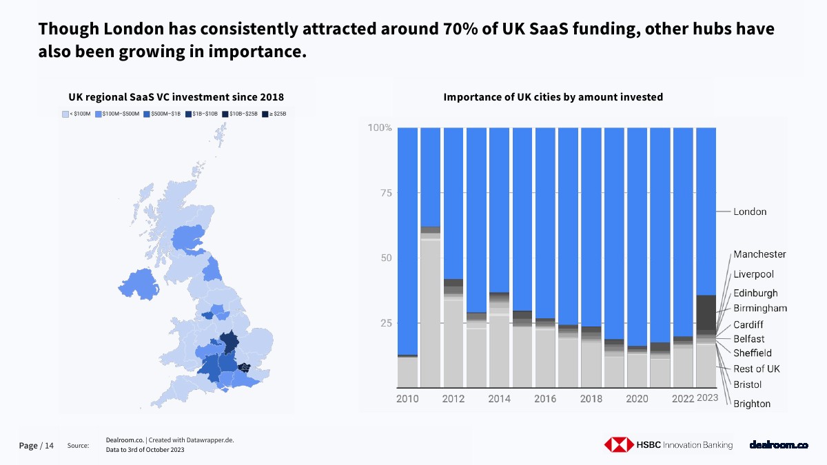 虽然伦敦吸引了英国70%的SaaS风险投资,但其他英国SaaS中心也在发展。