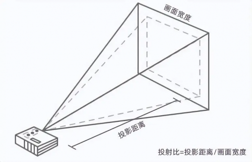 投射比=投影距离/画面宽度,比值越小,说明相同投影距离,投射画面的宽度越大,也就意味着投射出来的画面更大。