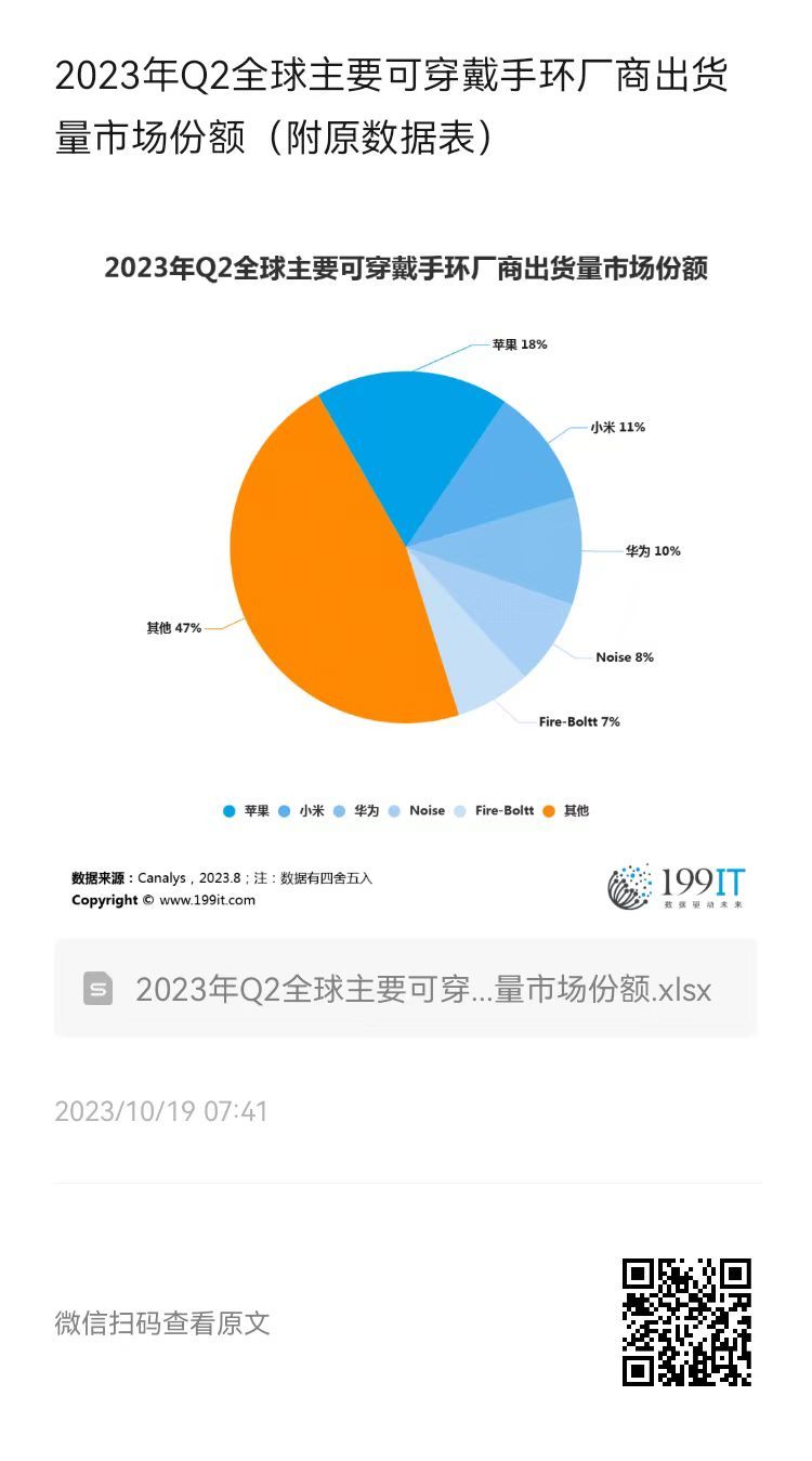 - 2023年Q2全球主要可穿戴手环厂商出货量及同比(附原数据表)