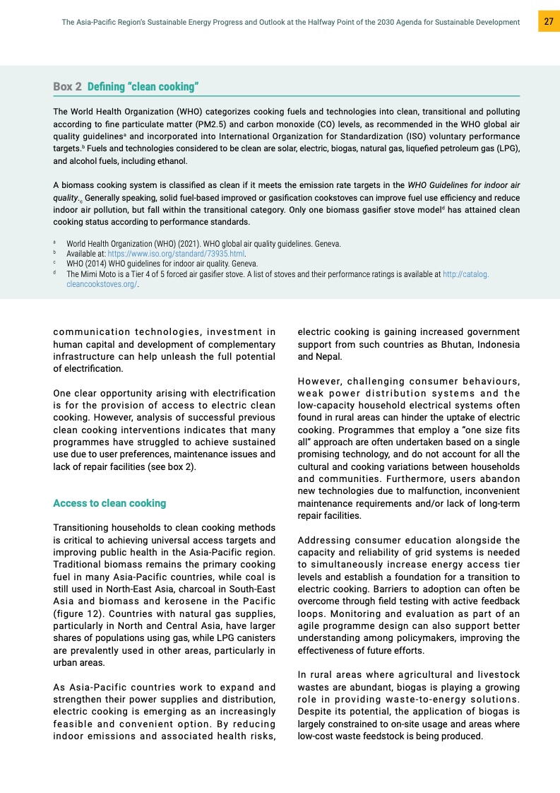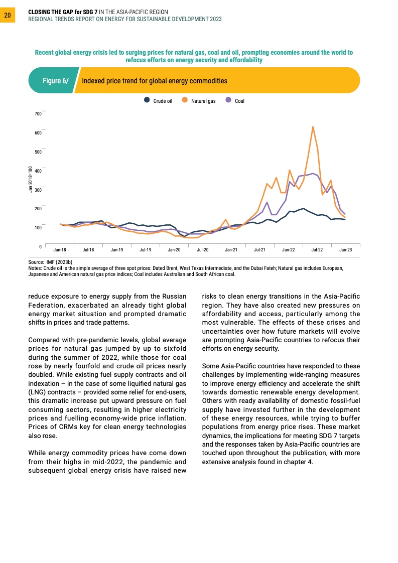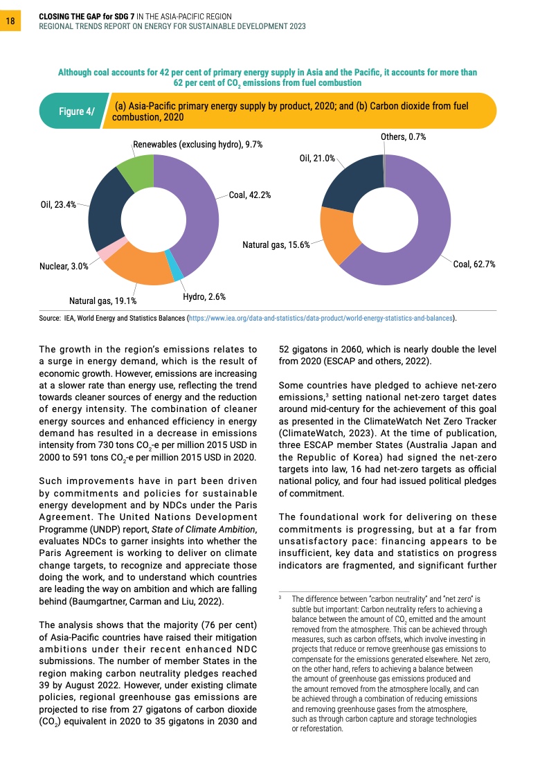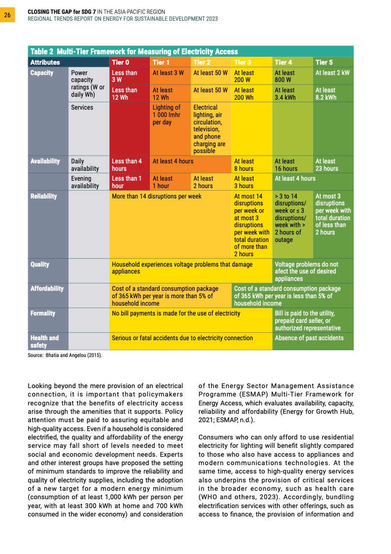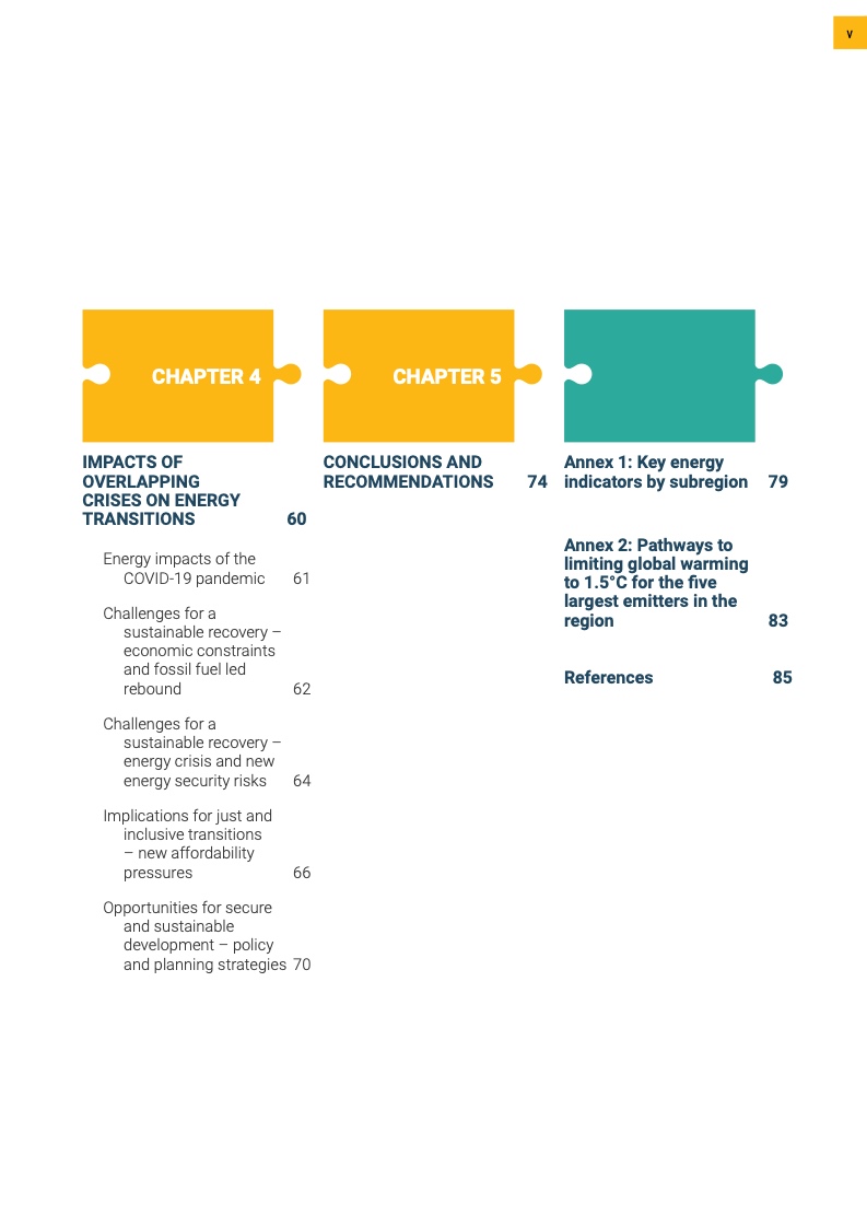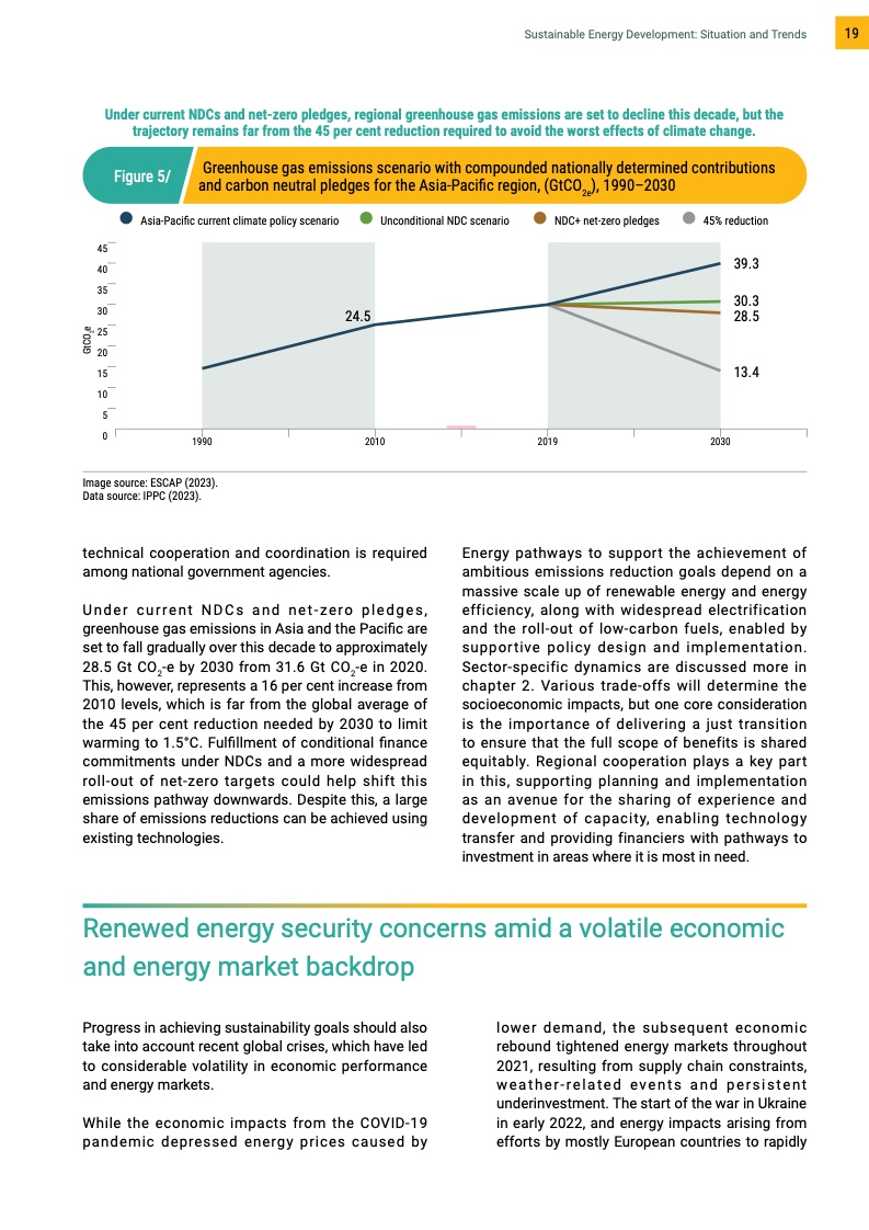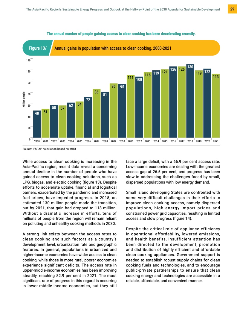 本报告旨在审查亚太国家在可持续发展目标行动十年中为实现可持续发展目标 7 所取得的进展。报告研究了主要的能源趋势,审查了当前面临的挑战,并评估了为实现净零排放而制定的更加雄心勃勃的议程,从而就利益相关方和政策制定者为实现人人享有负担得起的、可靠的、可持续的现代能源这一目标而需要采取的措施提出建议。